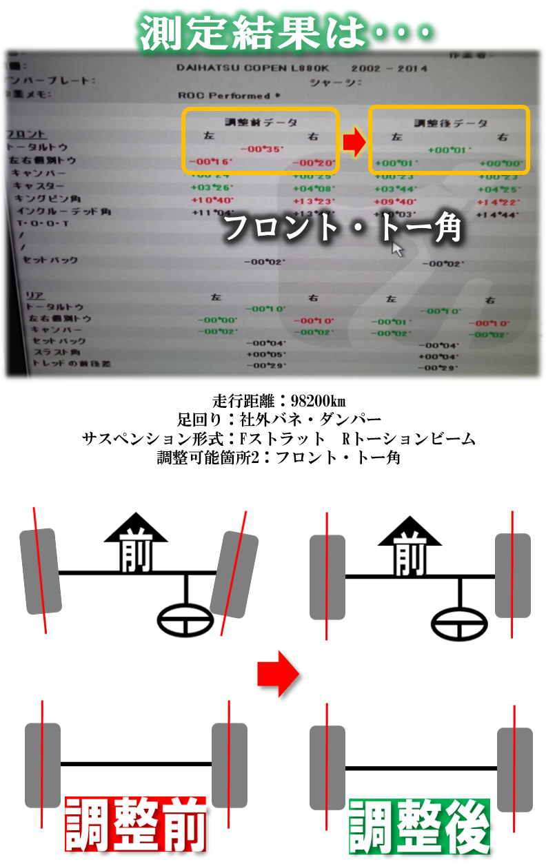 【L880K ダイハツコペン】のアライメント調整