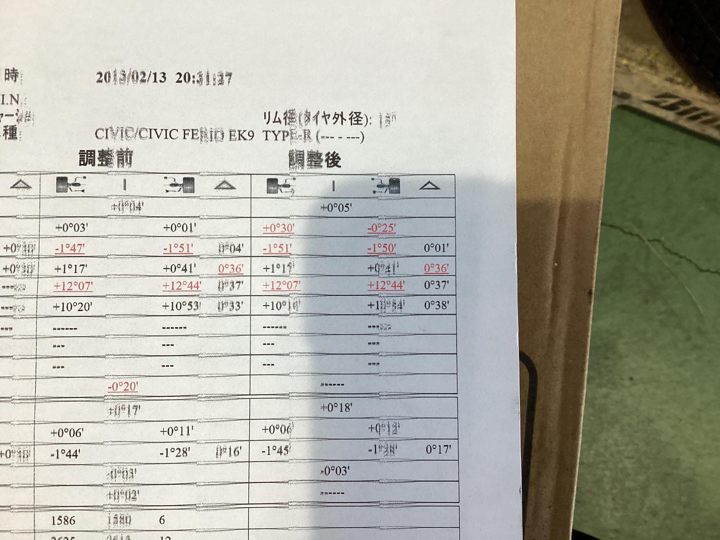 ホンダ シビックtypeR(EK9) アライメント測定&調整 作業