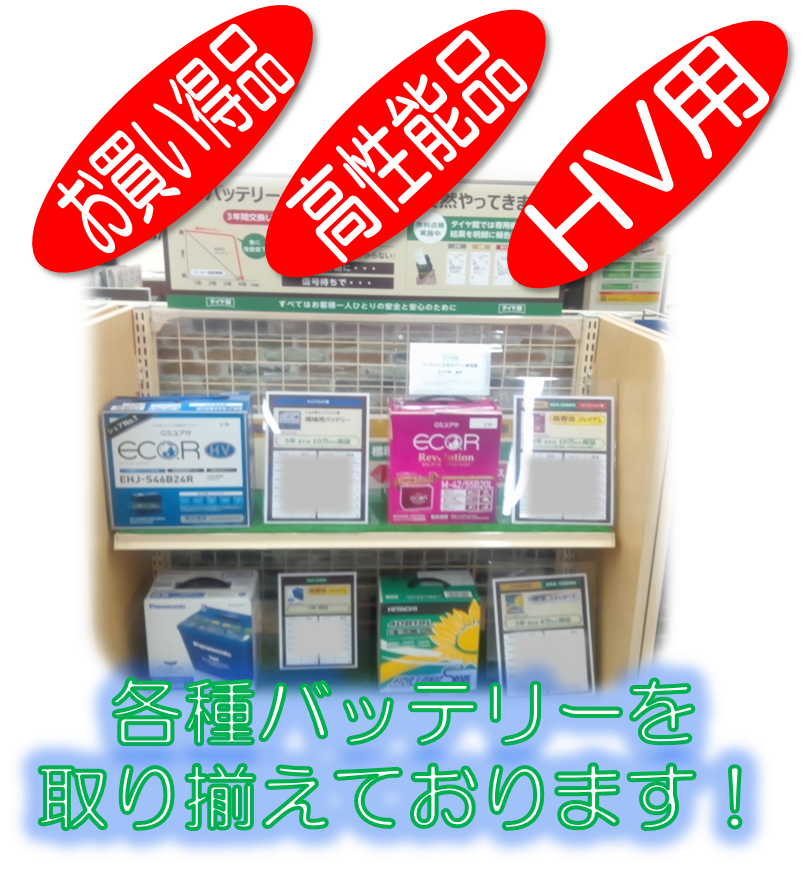 当店でも各種バッテリーを取り扱っています。ご相談ください。