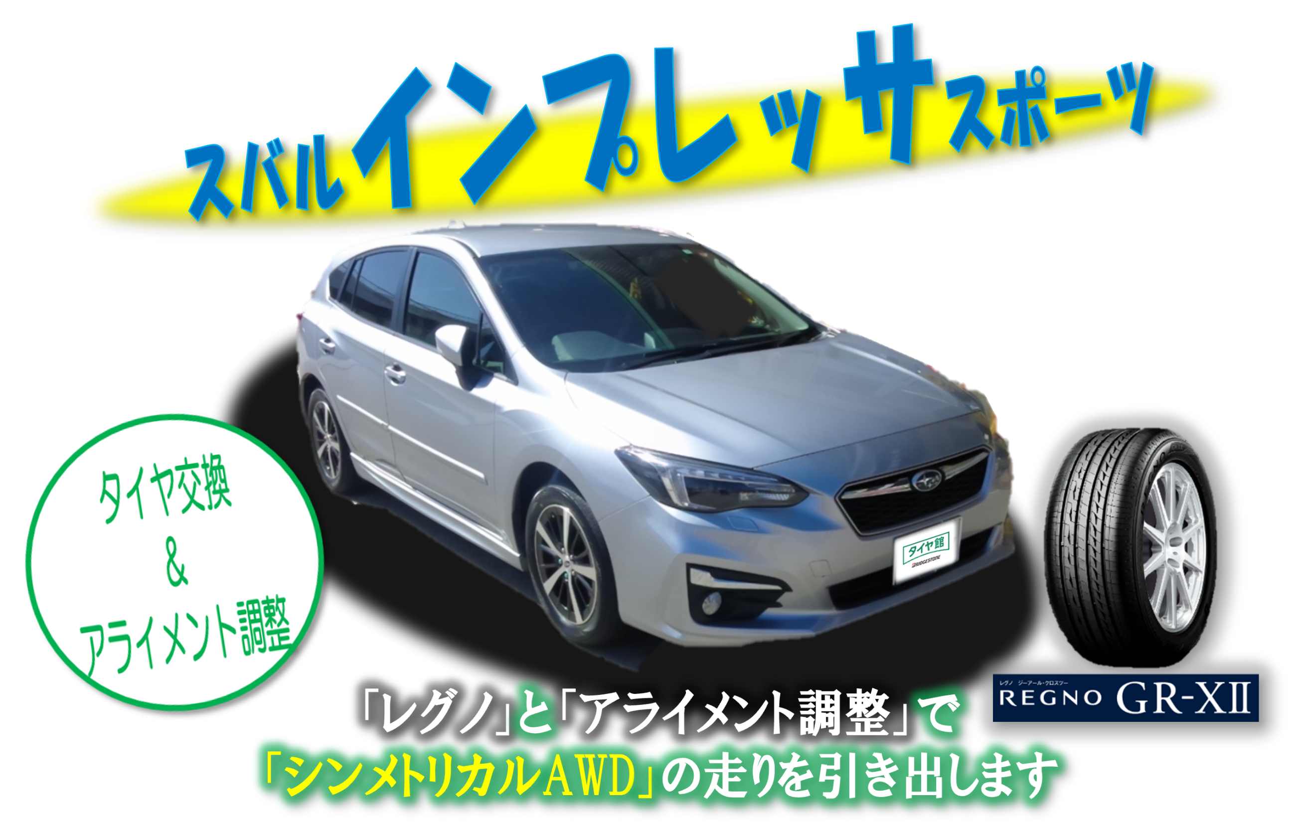 GT系【スバルインプレッサスポーツ】タイヤ交換&アライメント調整
