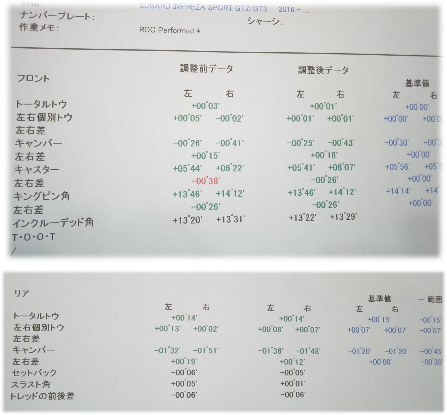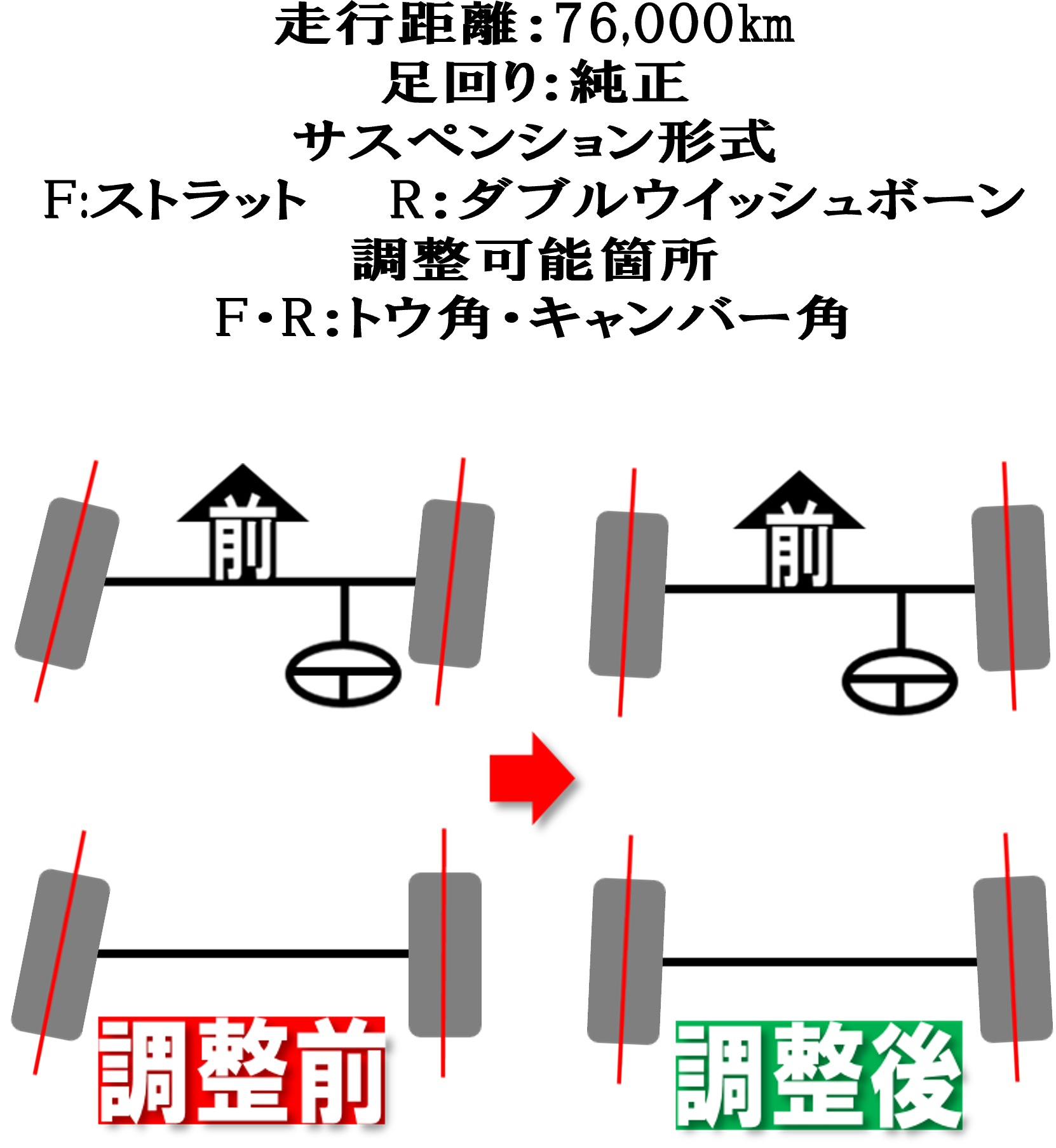4輪のトー角を車両基準値に合わせました