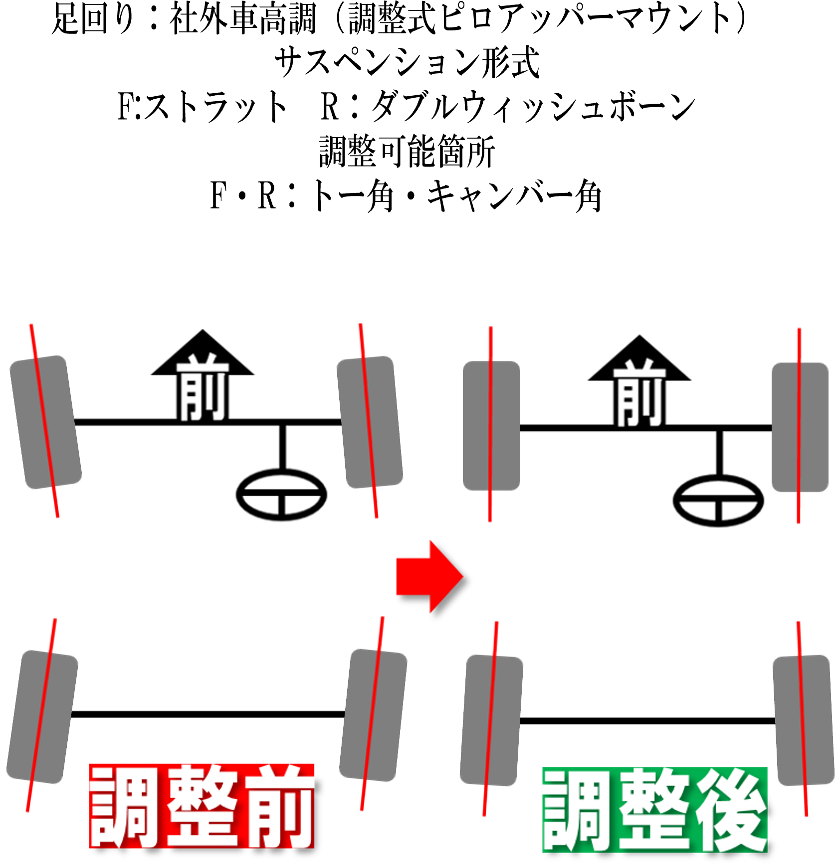 4箇所のトー角を調整し