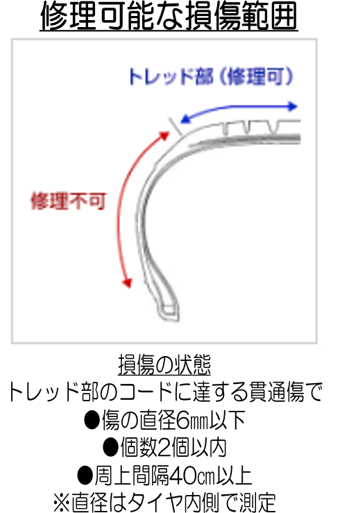 ・釘等刺さった角度に関係なく修理出来る為外面修理より確実