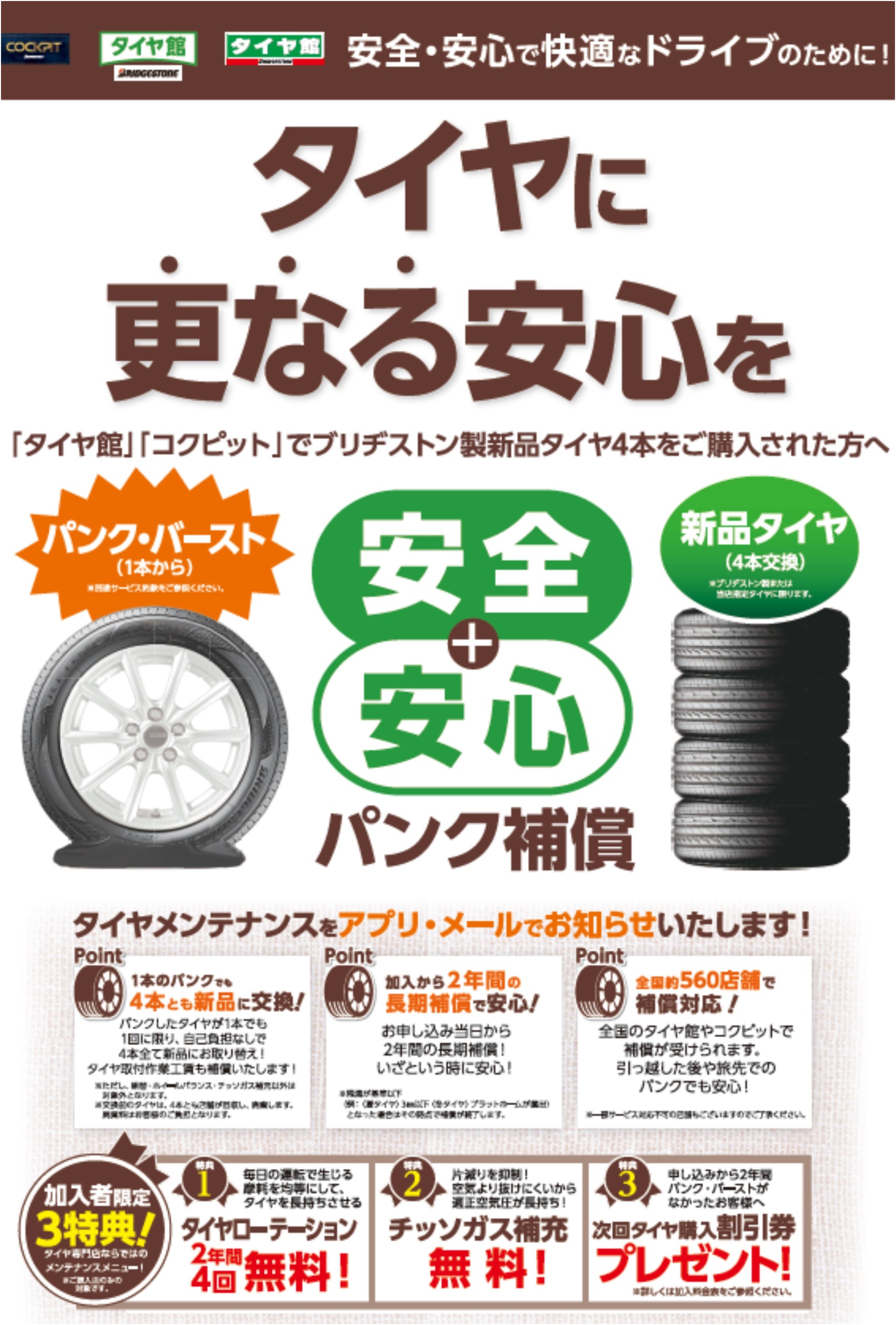自己負担無しで4本のタイヤを新品に交換出来ます