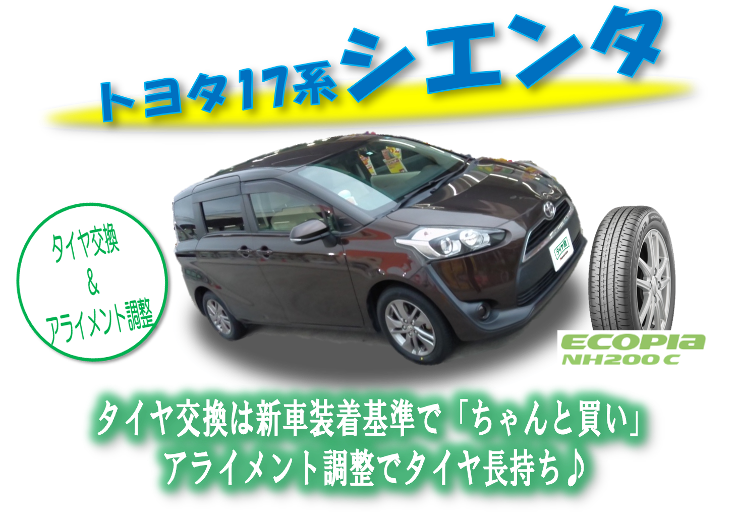 【ちゃんと買い】17系トヨタシエンタのタイヤ交換&アライメント調整
