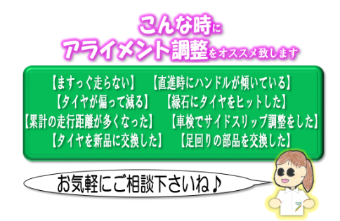 アライメント調整もご提案させていただきました
