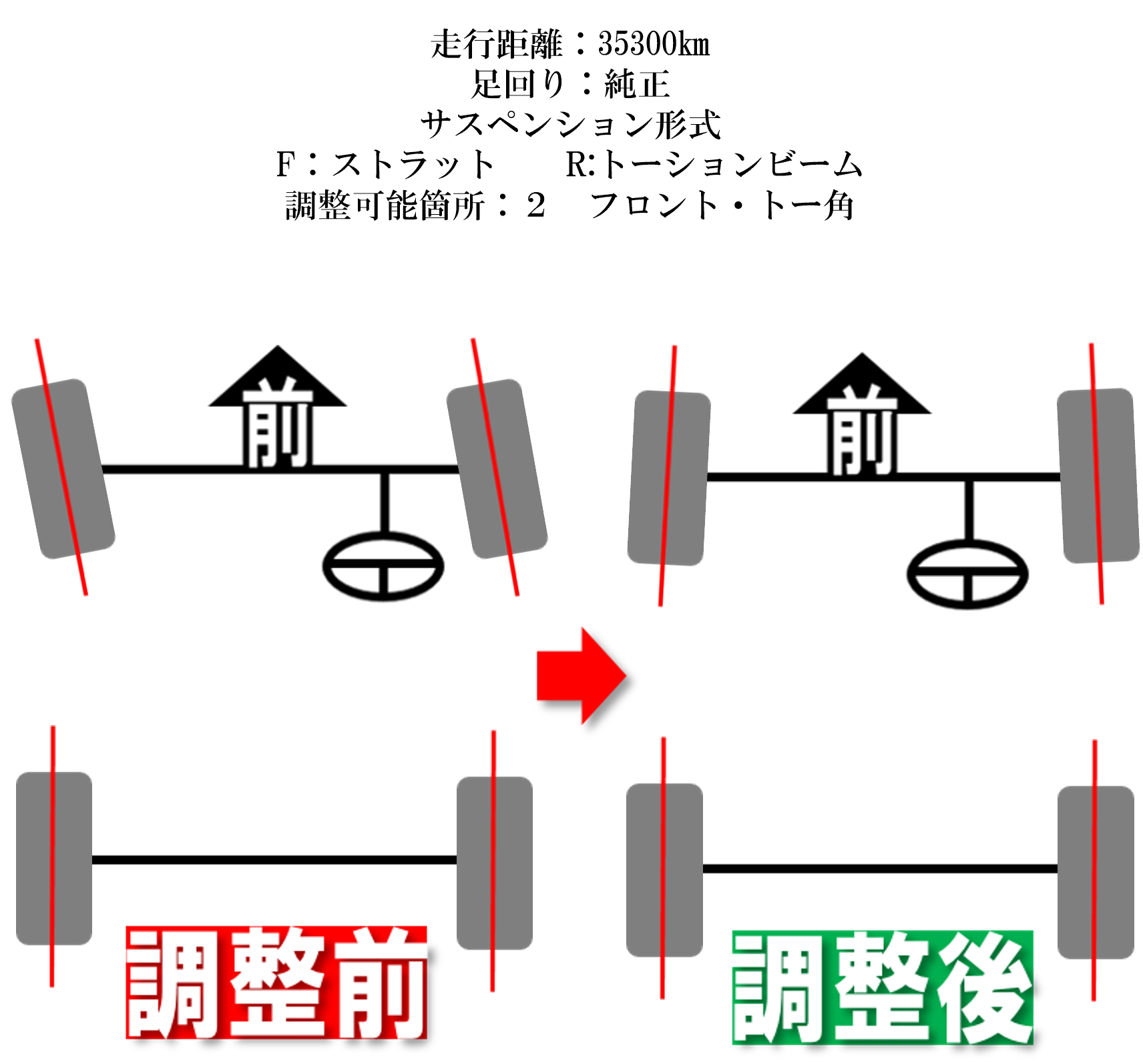 前輪トー角が左寄りにズレていたので