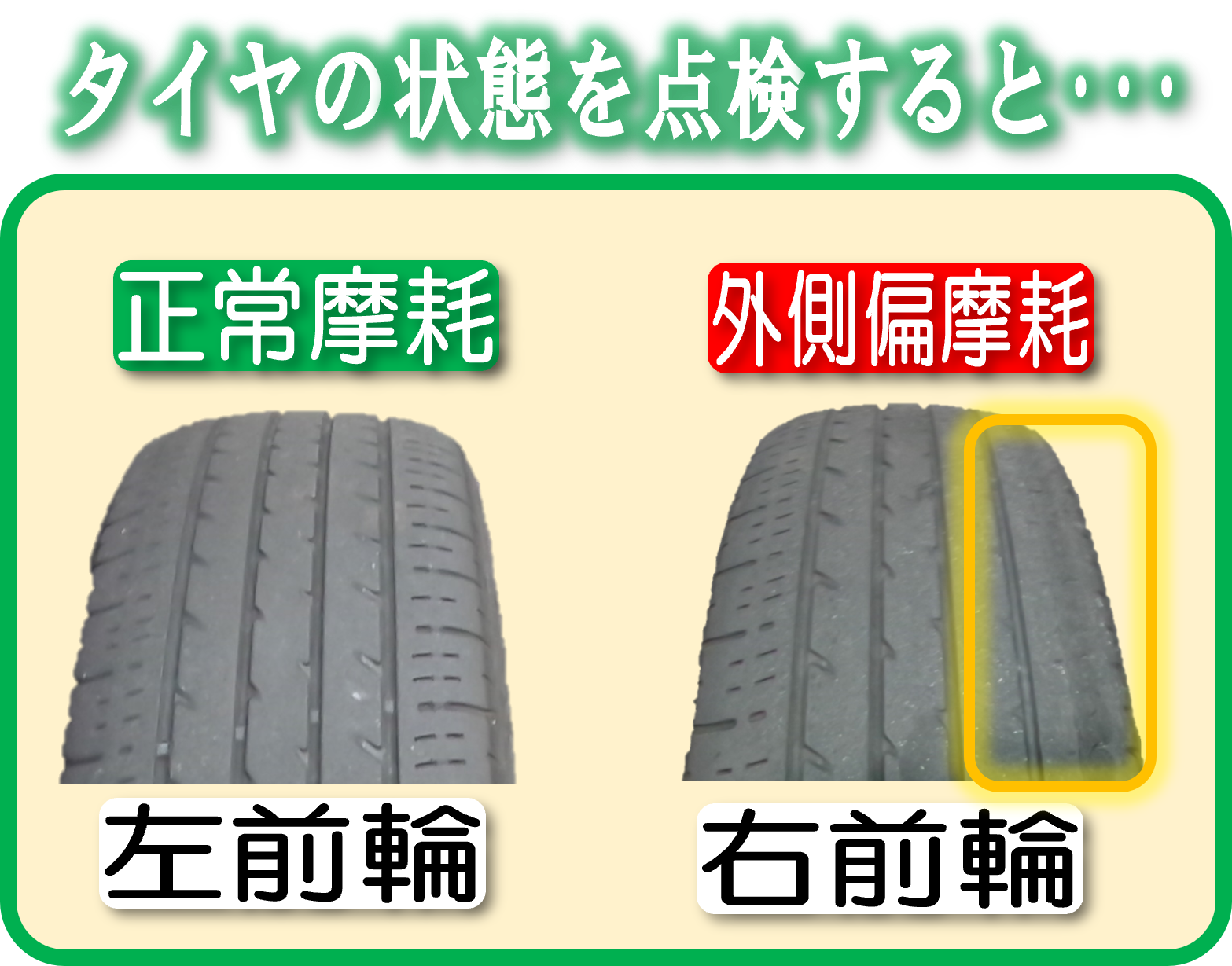 右側前輪外側に偏摩耗が発生しておりました