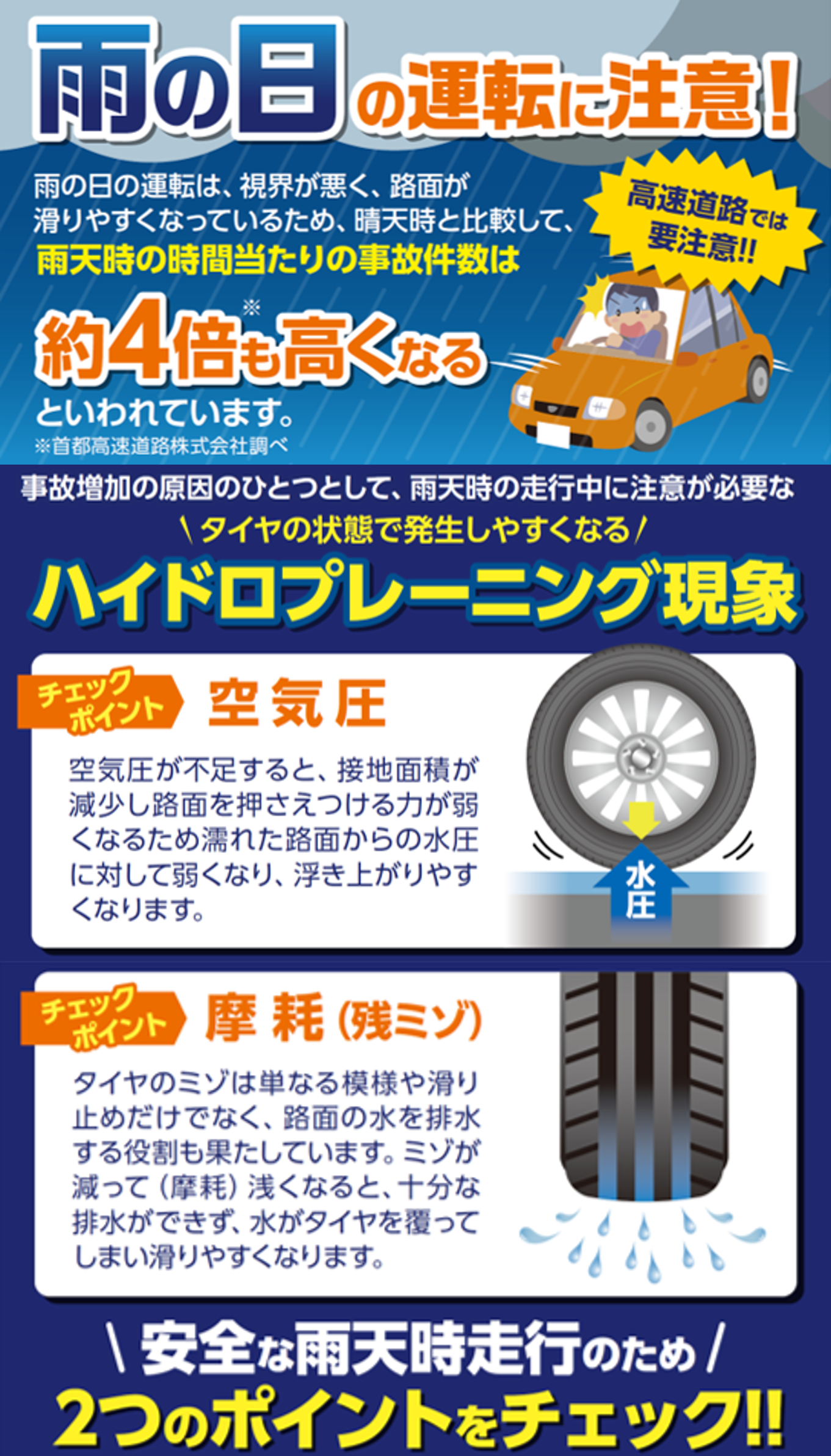 タイヤの空気圧・溝の深さも