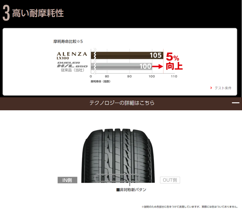 ※各種性能比較条件等はブリヂストンタイヤサイトをご覧下さい