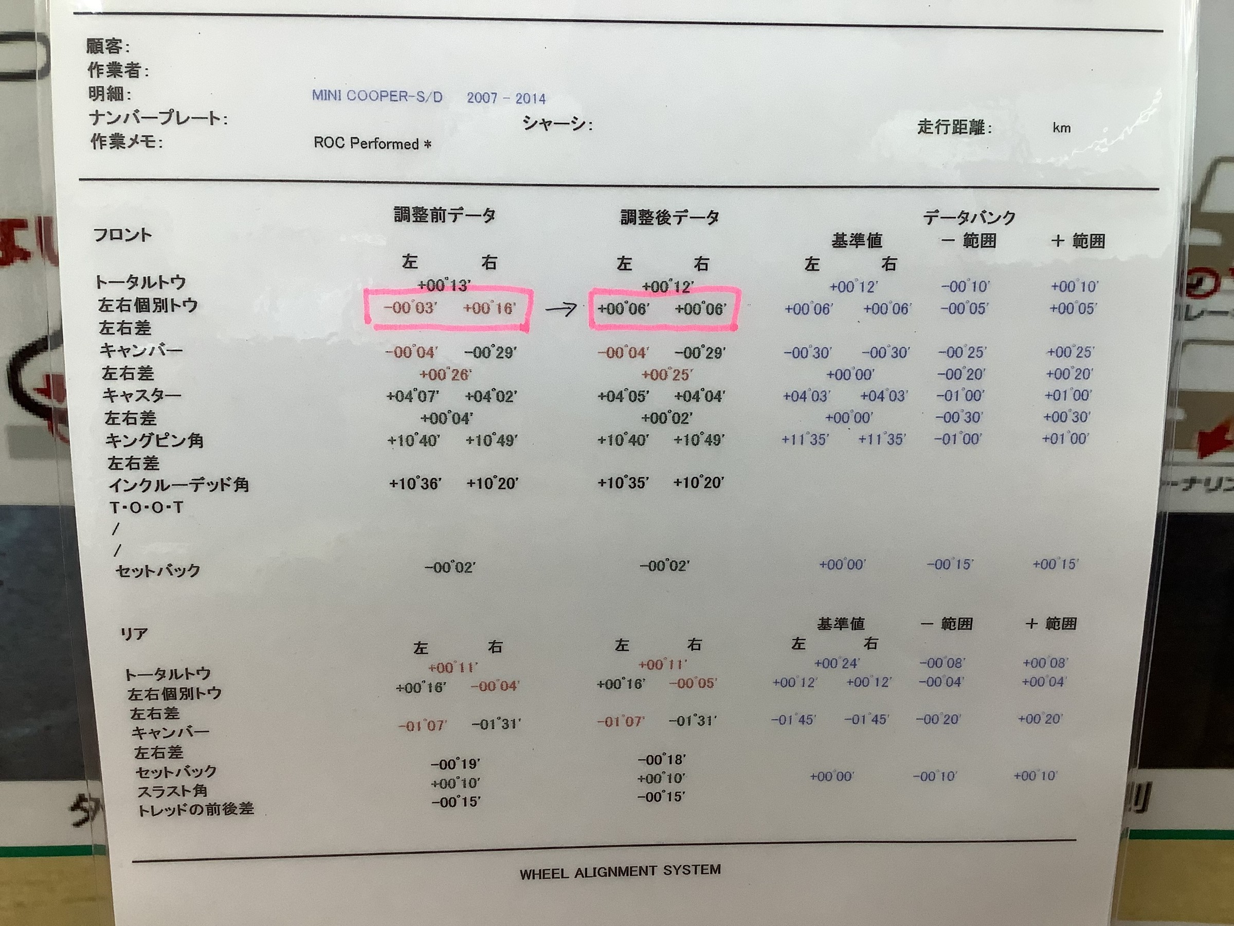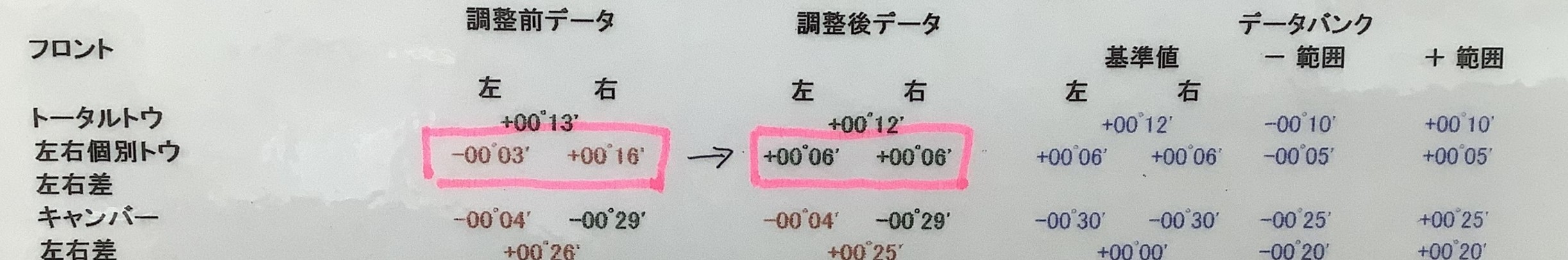 今回はトーの角度を基準値の+00゜06