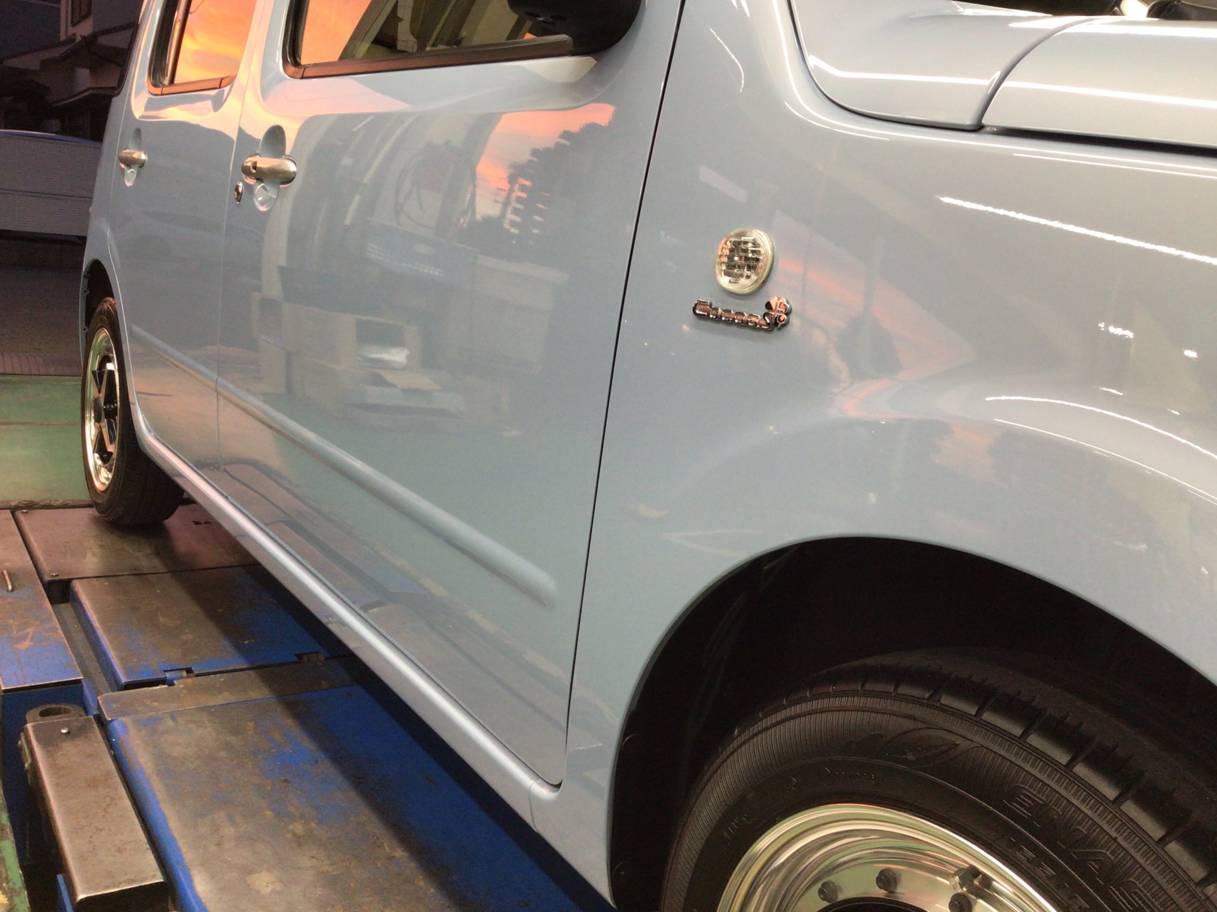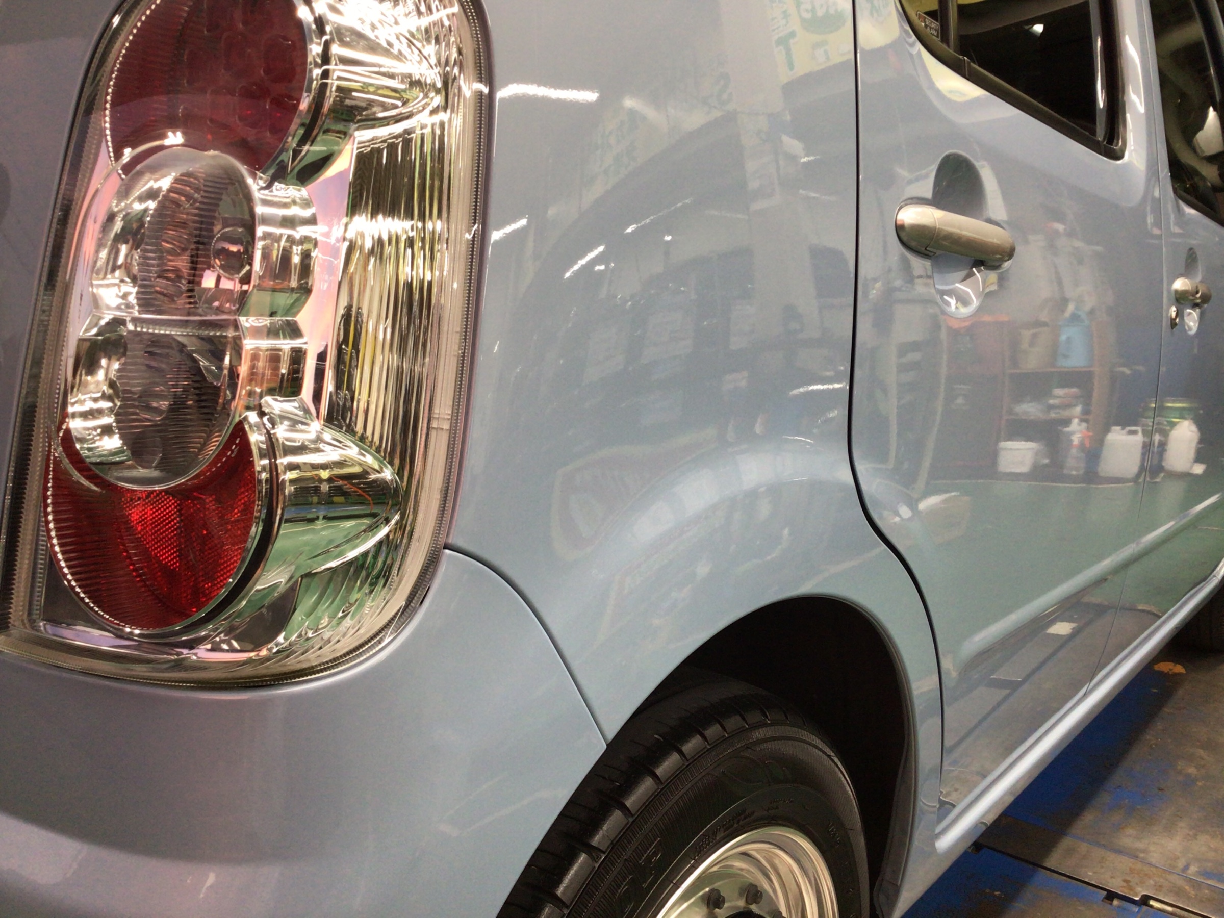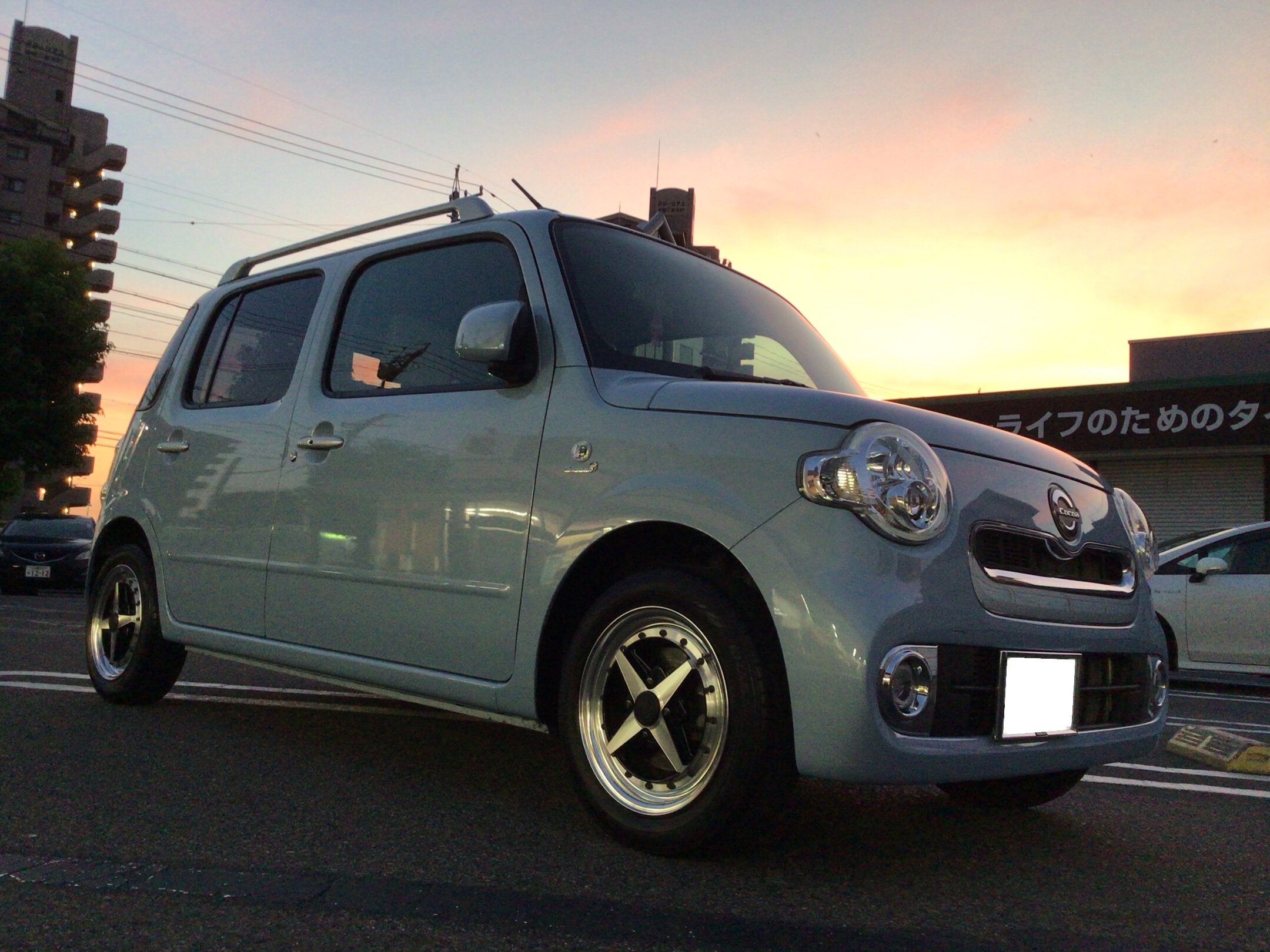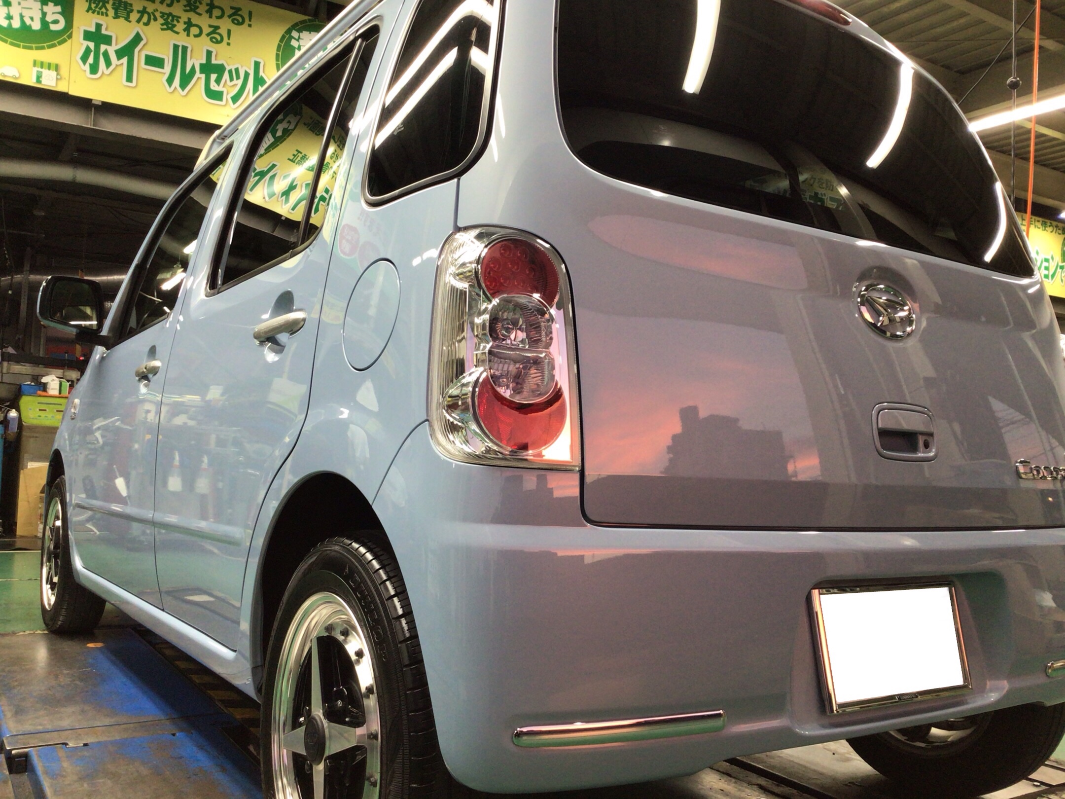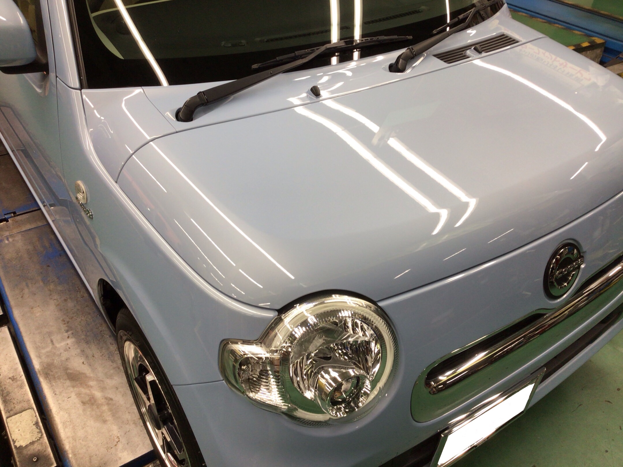 こまめに洗車されている「ダイハツ ミラココア」です。とてもキレイな状態をキープされていますが、ミラココアのオーナー様は落とし切れない「水アカ」がとても気になるようでそれを落として欲しいとの要望で今回ボディコーティングをご依頼いただきました。