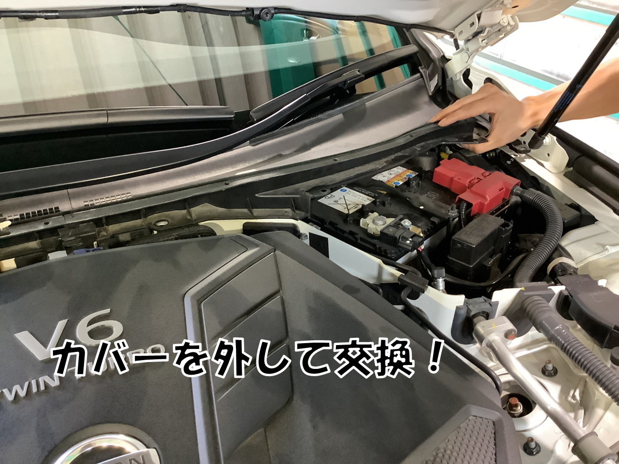 スカイラインにはバッテリーを覆うカバーがあります!