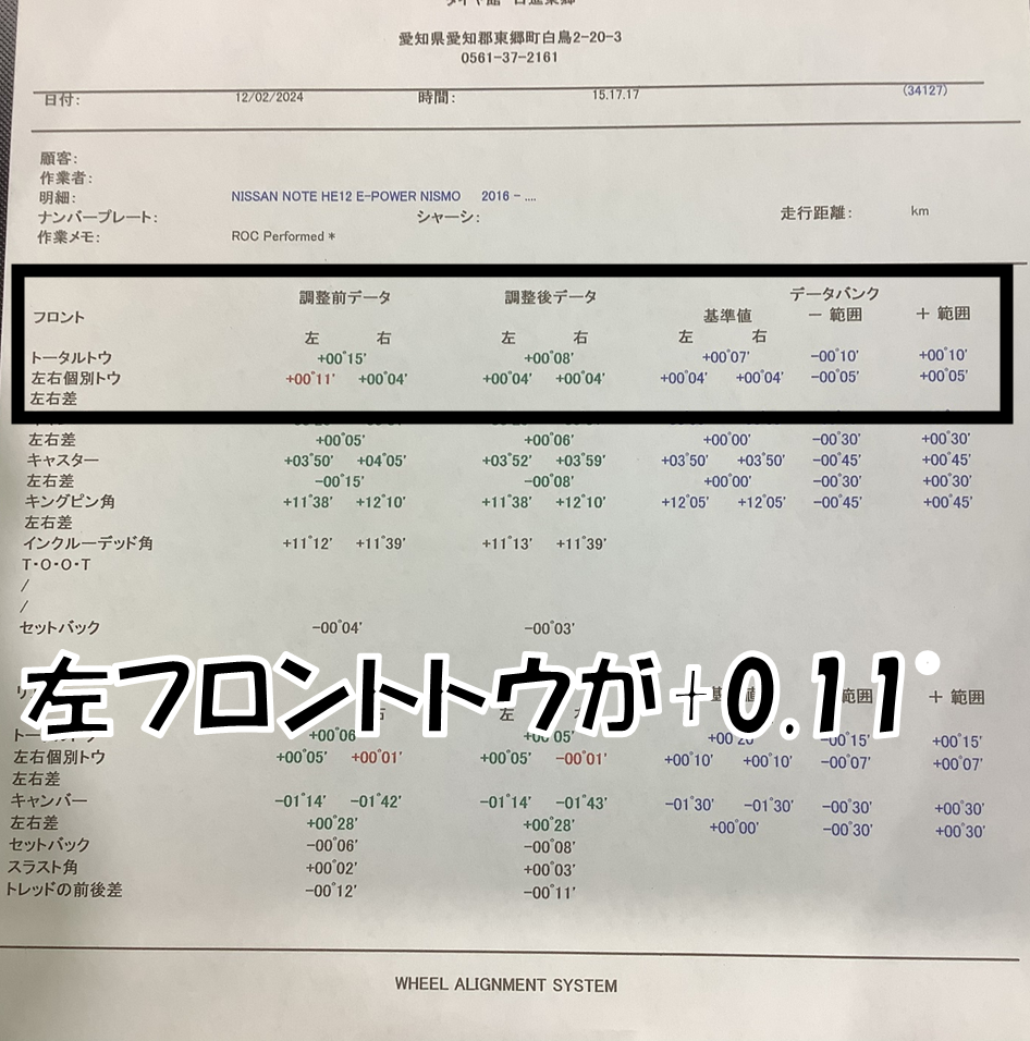 このたびはアライメント調整をご依頼いただき
