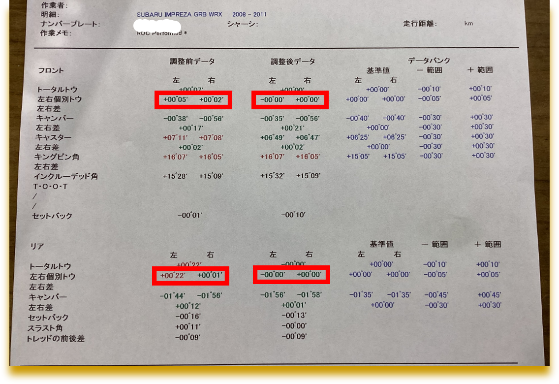 【SUBARU】【インプレッサWRX】アライメント調整