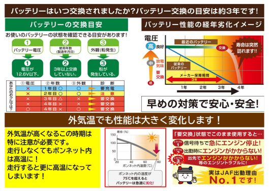 バッテリー上がりの前に予防交換がお勧めです!
