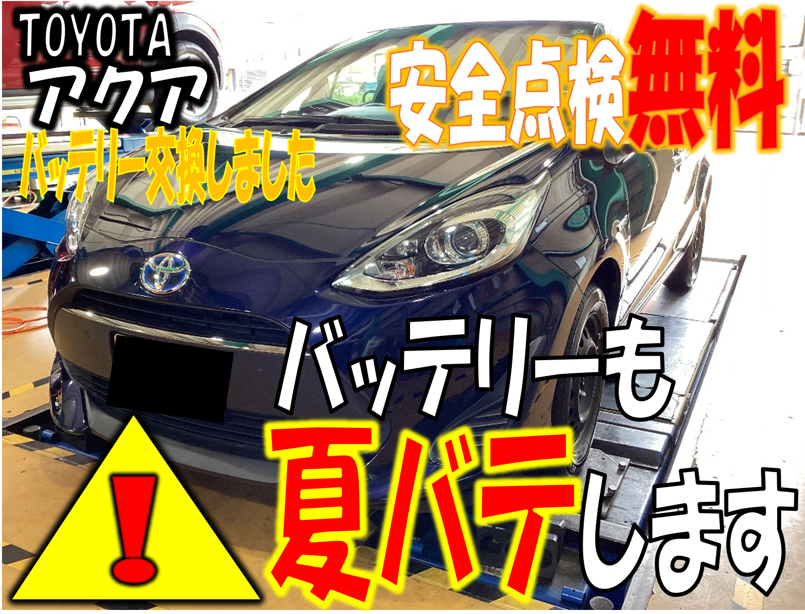 車も夏バテ?!夏休み前にしっかり点検‼【アクア】【バッテリー交換】