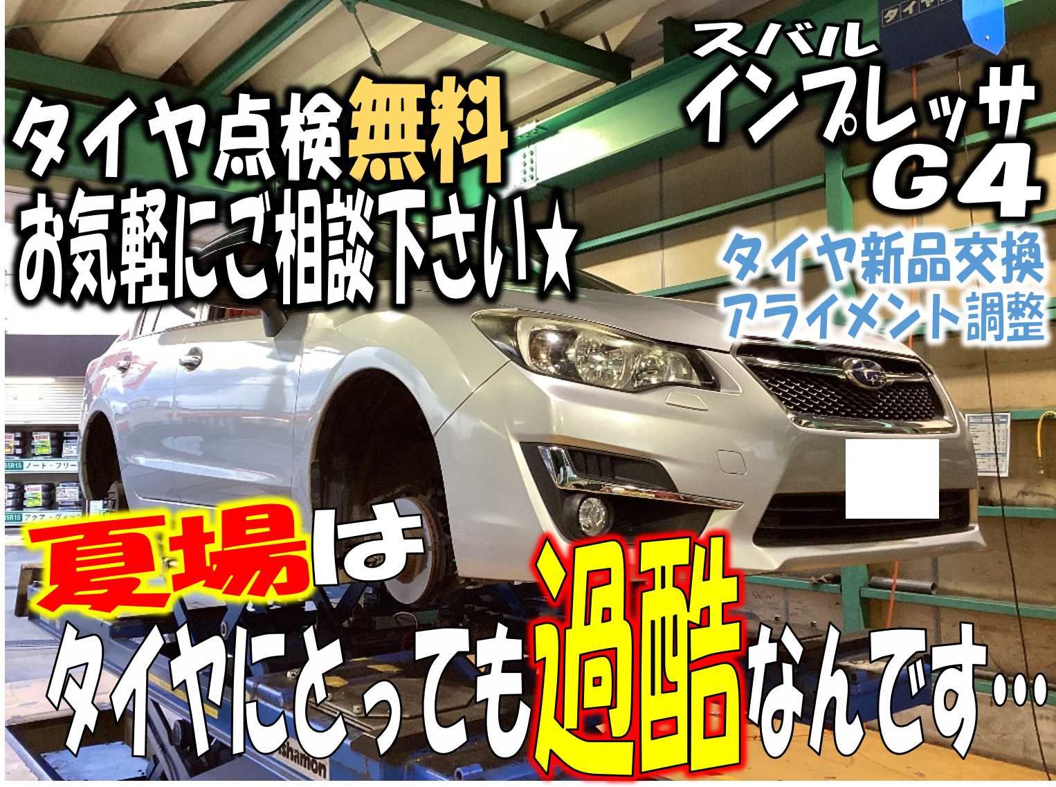 夏休みのお出かけ前にタイヤの点検しましょう‼【スバル インプレッサG4】【タイヤ交換】【アライメント調整】