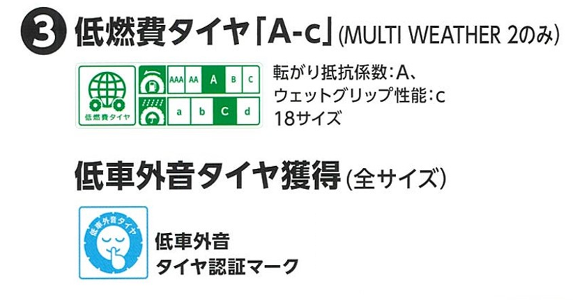 「低車外騒音タイヤ」にも認定されました
