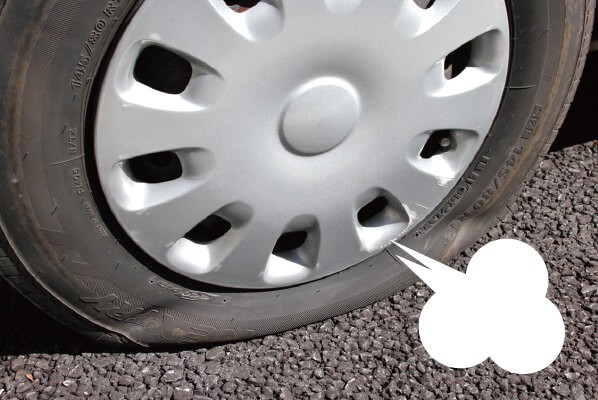 不良例: 指定圧より低い状態で走ると、燃費が悪化するだけでなく、タイヤが異常に発熱してバースト(破裂)の原因になります。