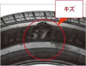 タイヤの側面はゴムが薄く、傷がつくと非常に危険です。