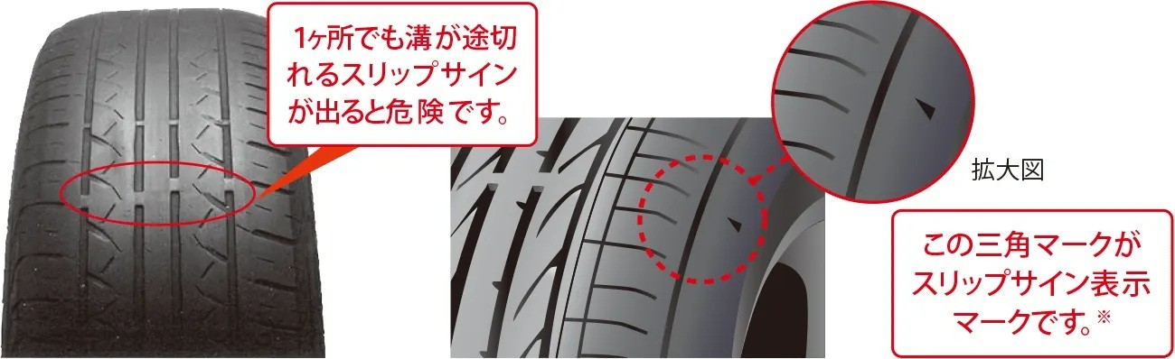 ④ 残溝(スリップサインの確認)