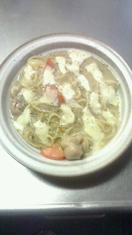 余りものでサクッとね!! ポスト 2014年3月31日 前日に作りすぎたシチューを使ってのアレンジです!一見パスタに見えますが実は…シチューをベースに麺は、これまた余りもののチャンポン麺です。まーただ、からめるだけなんですが(笑)パスタっぽくするために、仕上げにチーズ、バジル、黒こしょうでパスタっぽくしてみました(●^o^●)麺もちもちでかなり美味でした!まぁ~甲斐さんには無理かな(笑) 担当:永冨
