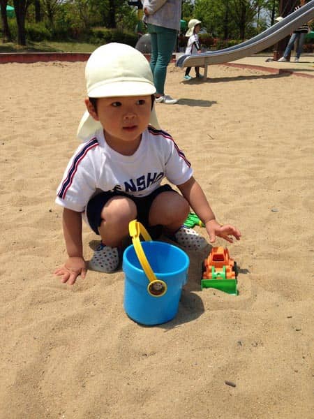 ゲームでは、歌遊びをしたり、自由時間は一人で砂遊びを満喫していたかと思えば