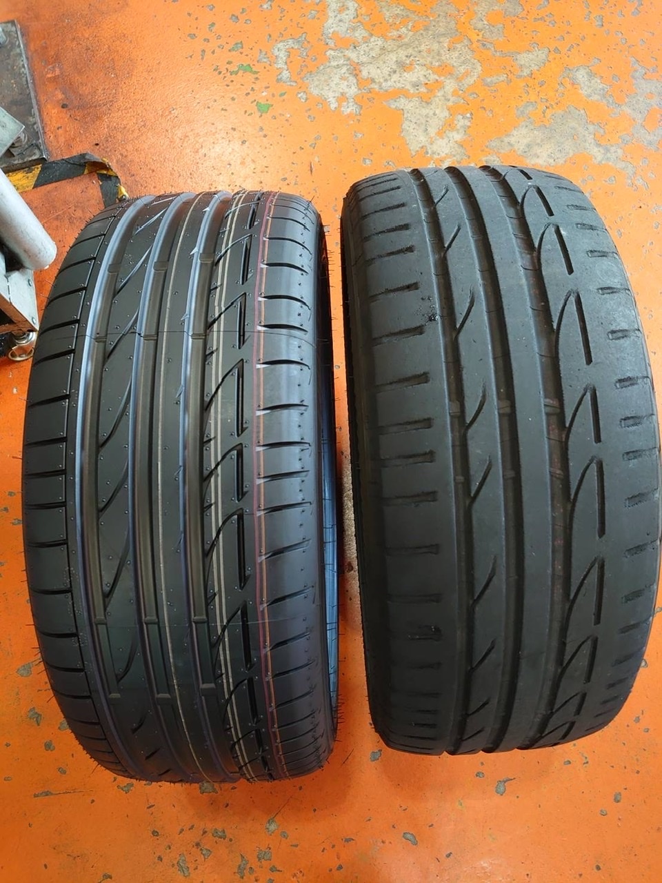 今回は4本交換で前後サイズ違いだったので、純正品則松ポテンザS001 ランフラットタイヤにて交換です‼️
