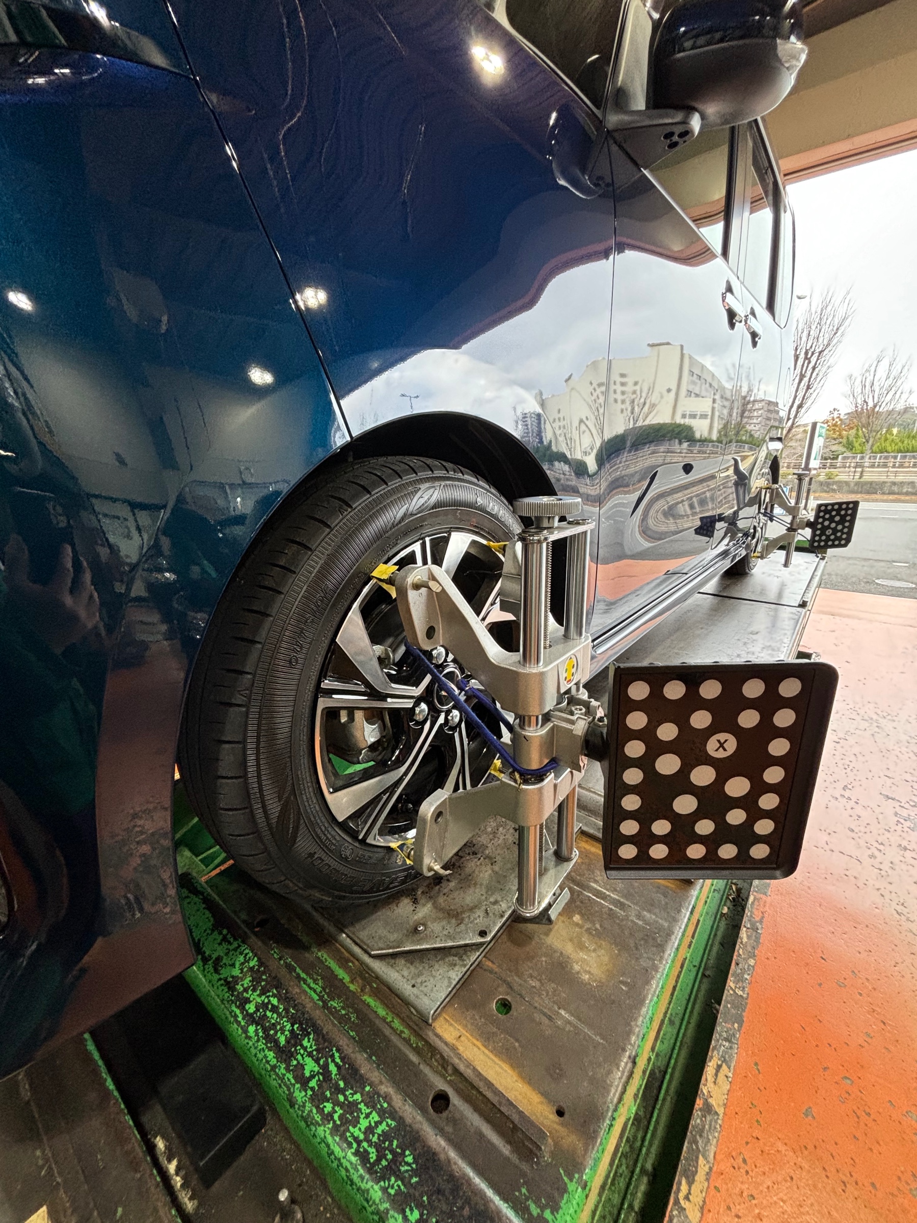 アライメントをしっかり取ることで車を真っ直ぐ走らせることはもちろん、タイヤの偏摩耗を未然に防ぎ、タイヤの寿命を伸ばすことも可能です。タイヤは高額なものになりますので少しでも長く使いたい気持ちは皆様同じですのでおすすめの作業となっております。