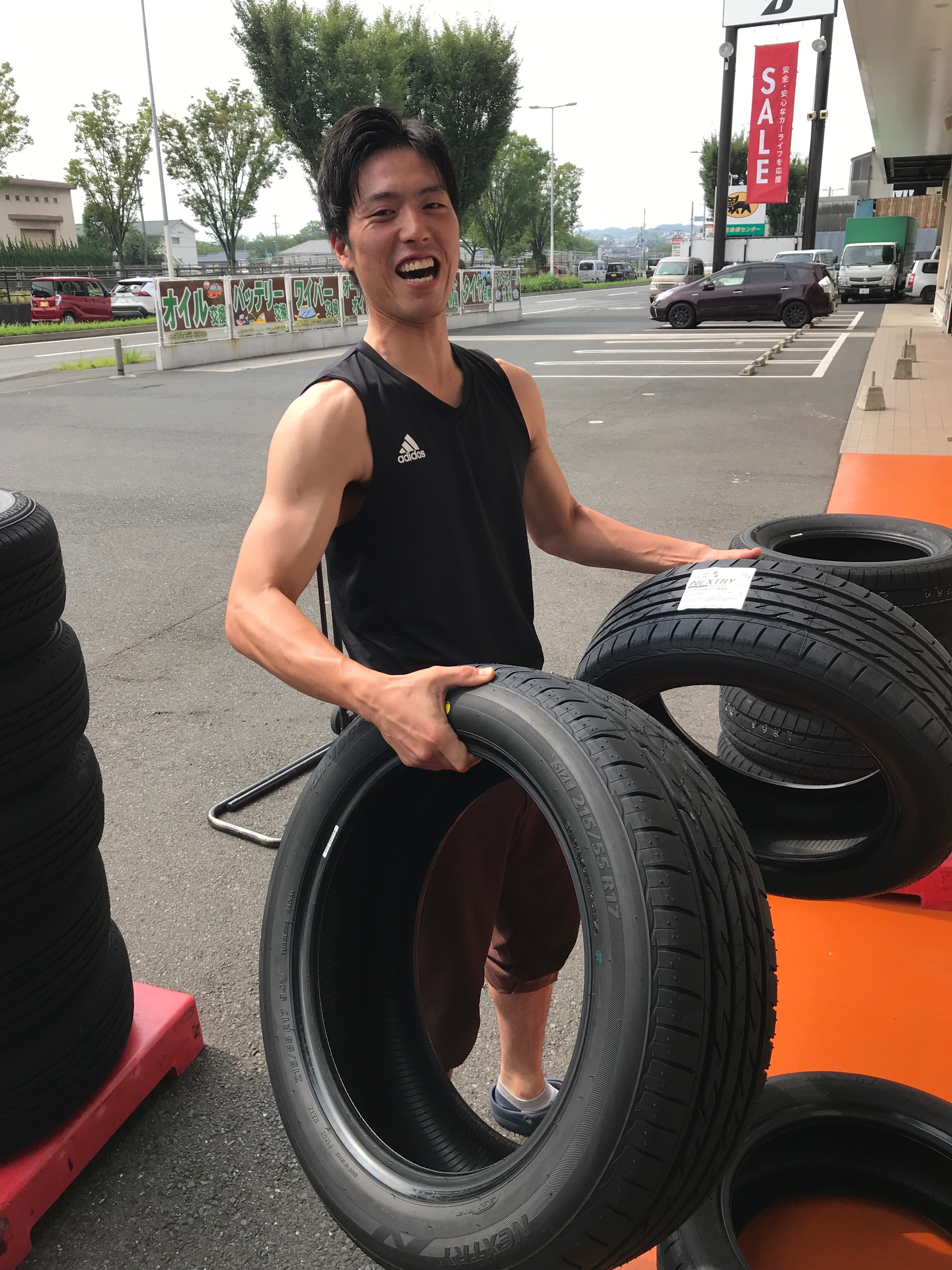 こちらは朝イチのタイヤ搬入時の一コマです!