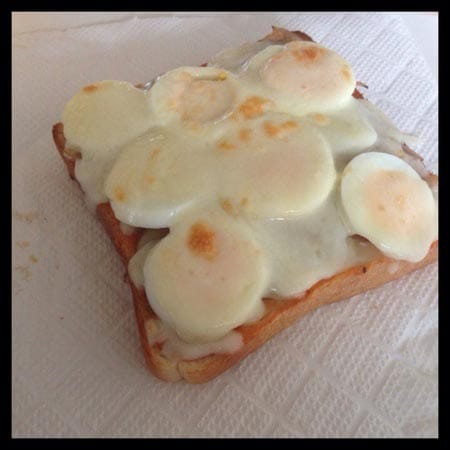 ゆで卵をのせてチーズをかけて
