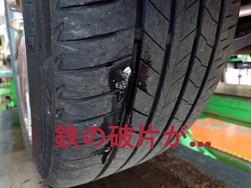 こんにちは 八幡東区・若松区・中間市・遠賀郡のお隣 直方市もお近くの 福岡県北九州市八幡西区にある タイヤ館則松です(^^)/ いつもご覧いただきありがとうございます。 さて、今回はパンクしていたお車の事例です。 釘やねじなどのパンクは補修もやっていますが 大きすぎたり、タイヤに引きずり痕...