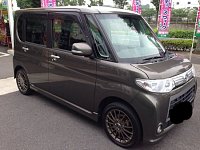 先日、タントにタイヤホイールを取り付け致しました。 たまたま、パンクをしてしまっていて交換するならホイールも一緒に交換するとのこと。 そこで、お客様と一緒に選びボディカラーに近いブロンズのホイールを取り付け。 統一感が出ましたね(笑)