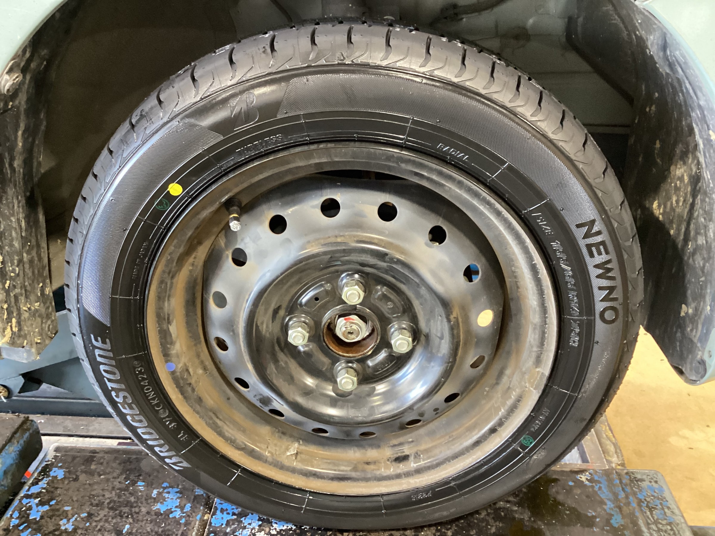 タイヤサイズは155/65R14のブリヂストンの新作ニューノという商品をお取り付けさせていただきました!