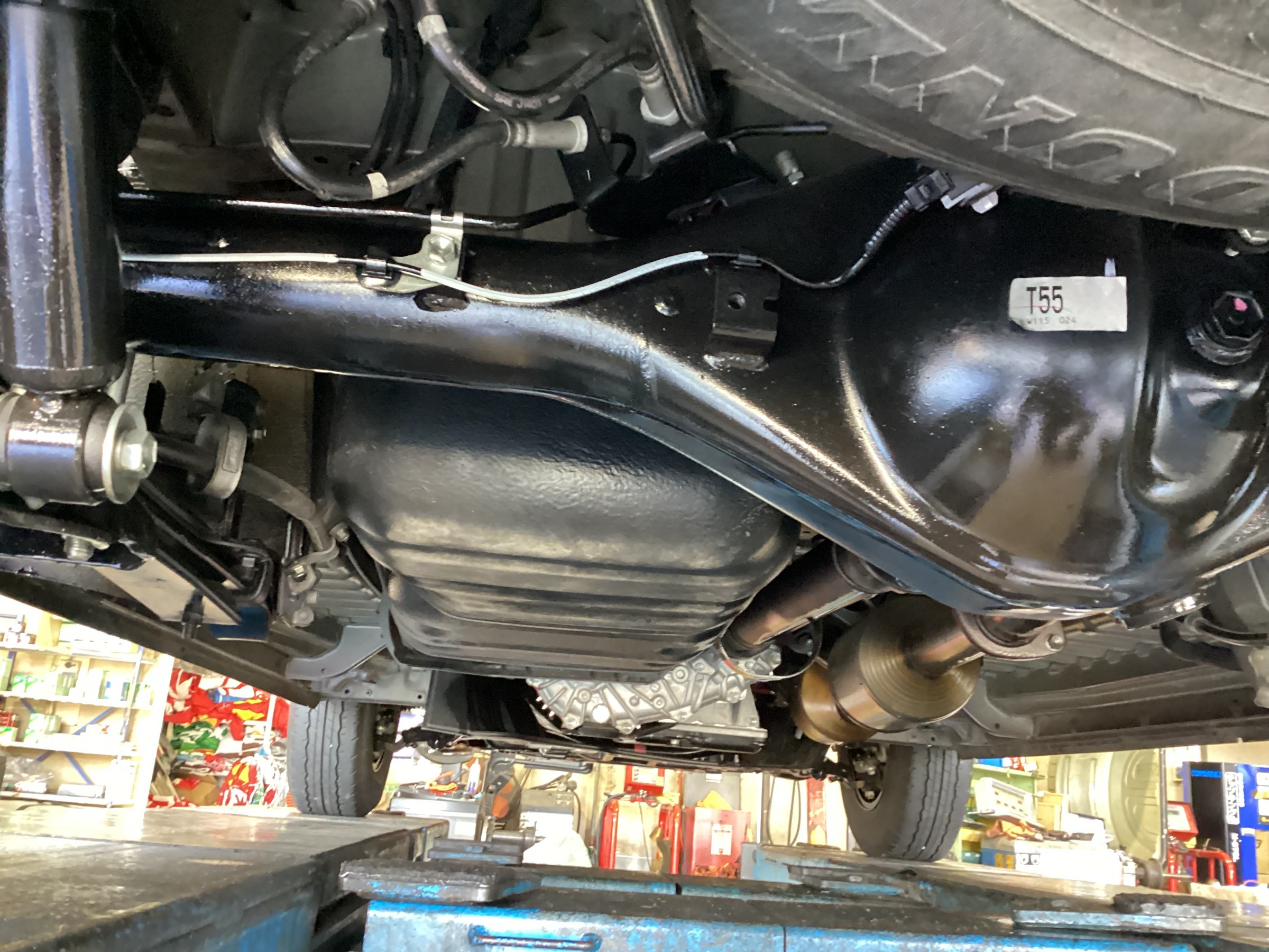 ハブやマフラーなど所々に錆が発生しておりましたので、一緒に全体防錆の施工をさせて頂きました。