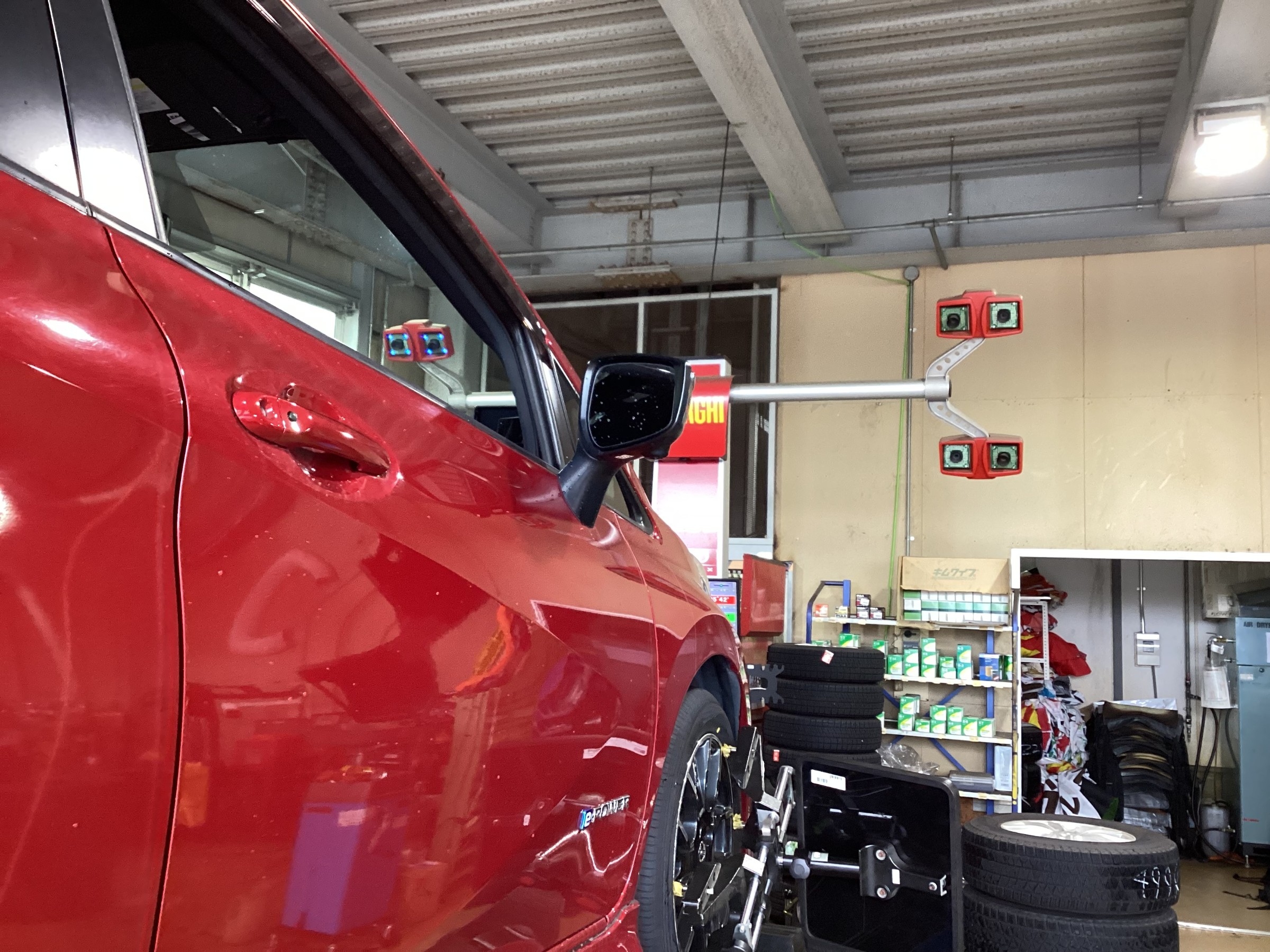 タイヤ交換後に専用のセンサー取り付けて角度の調整を行います!!