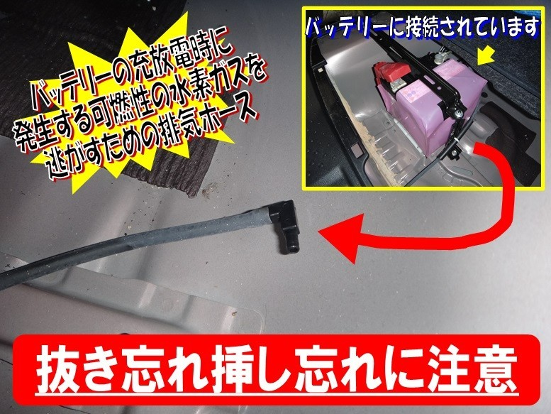 新しく設置したバッテリーに”排気ホースの接続を忘れる”