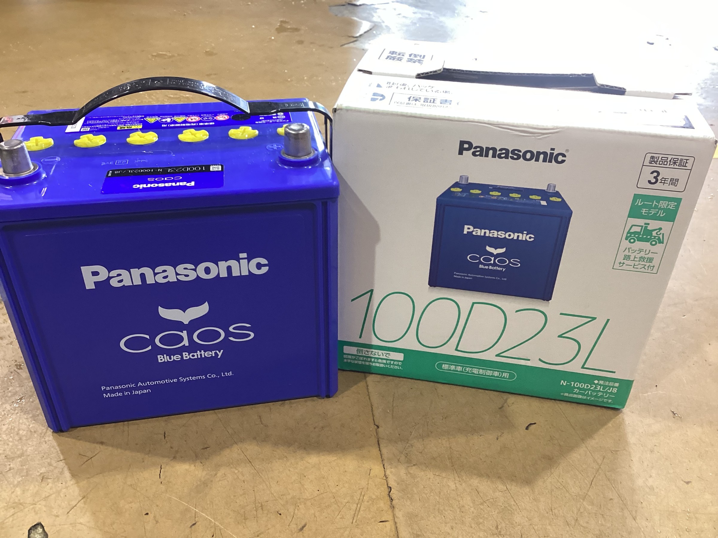 Panasonicのバッテリーは、ブルーが特徴的で保証も三年あるのが魅力です。