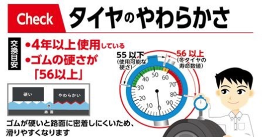 ・消しゴムのように硬かったりビクともしない場合は、凍結路面で滑りやすくなります!