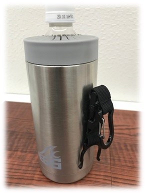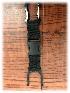さらなる便利さを求め、ペットボトル用のバックル付きカラビナに変更した