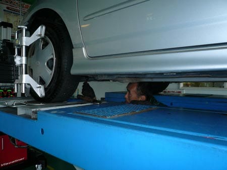 そうです、こうやってクルマの骨盤調整 アライメントを実施するんです!(^^)!