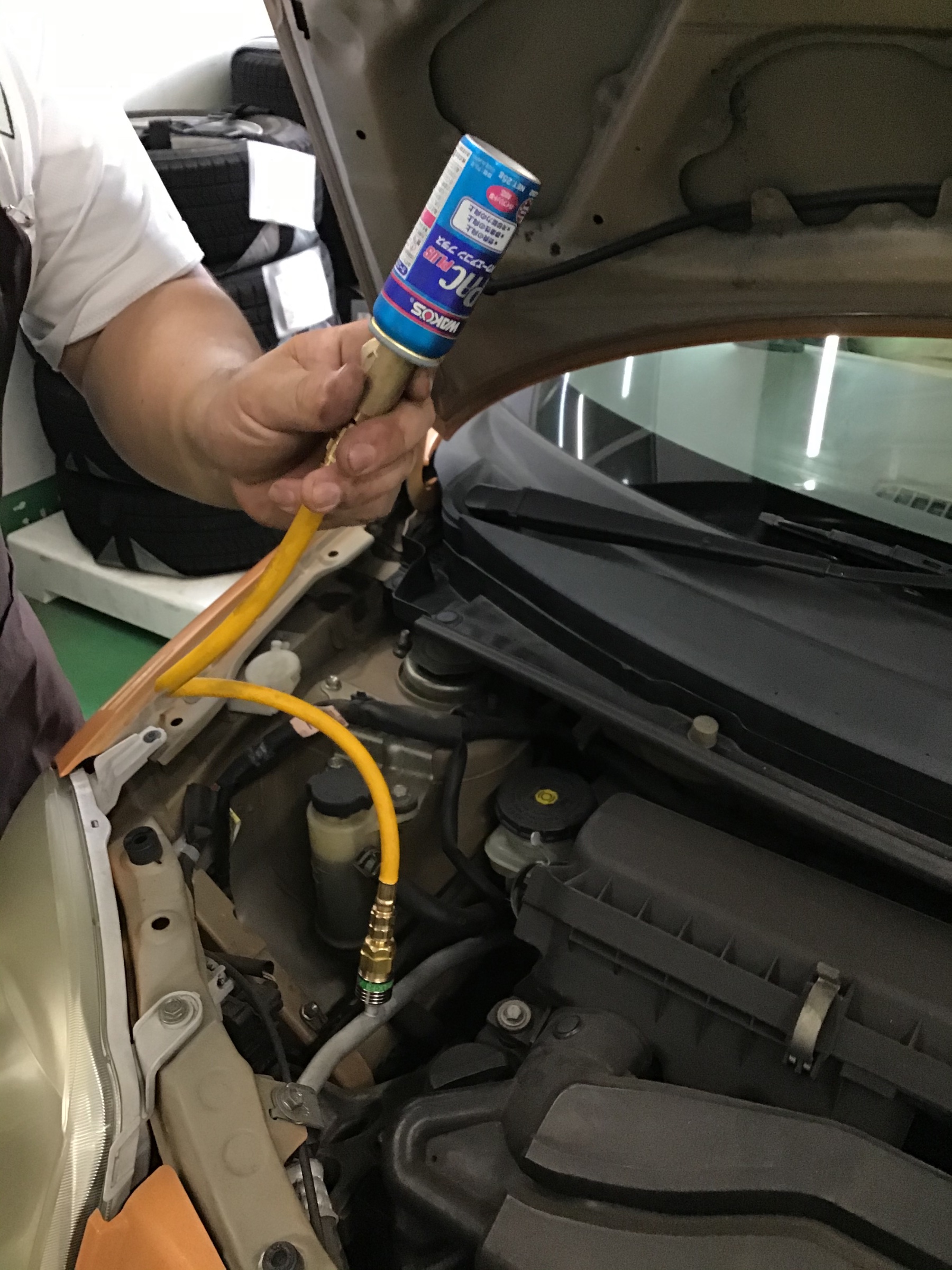 早速エッセでパワーエアコンガスを注入します♪