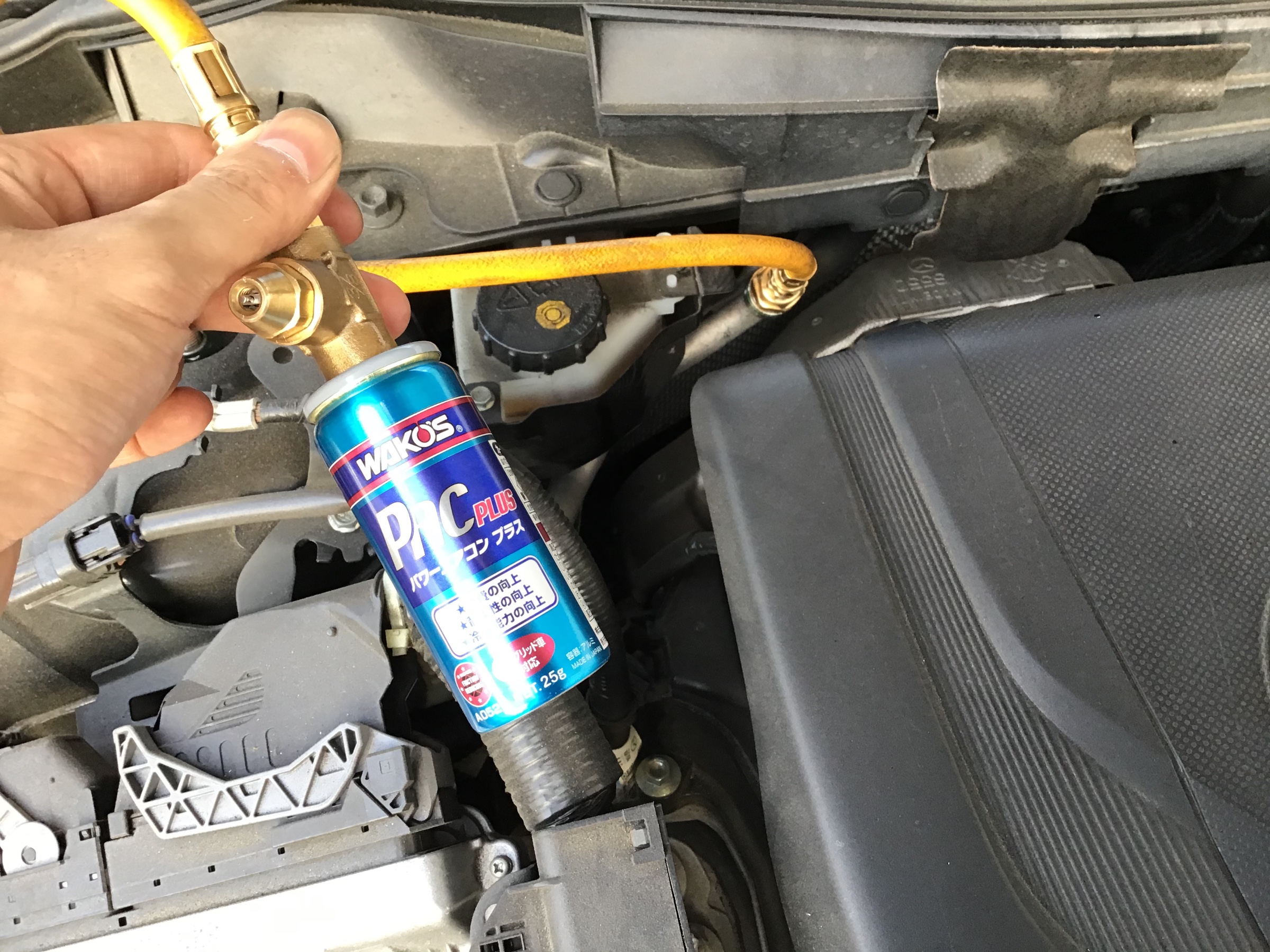 今回は、ワコーズのパワーエアコンプラスで補充を行います!