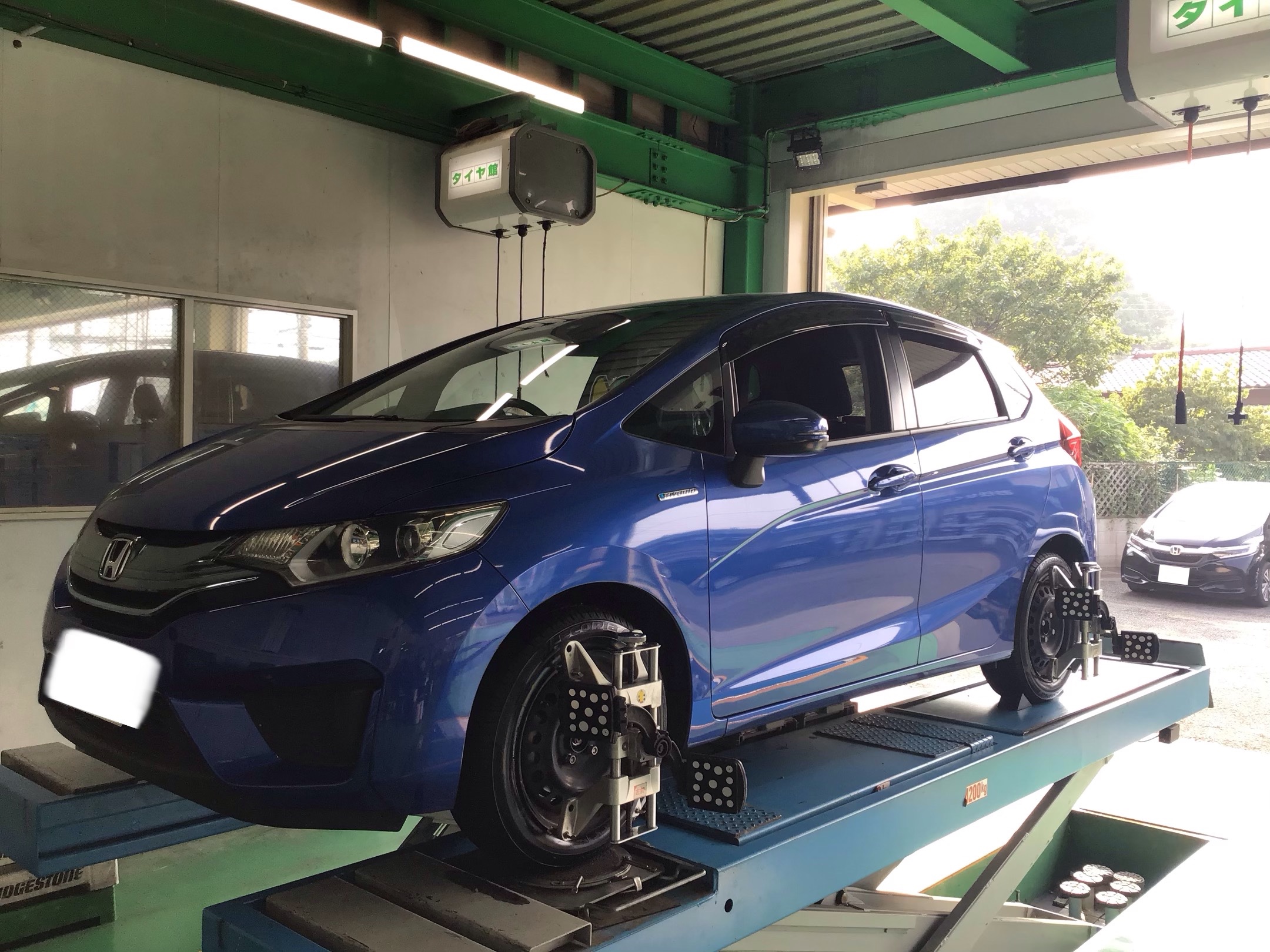 先日フィットのタイヤ交換をさせていただき、その後アライメント調整を行いました。