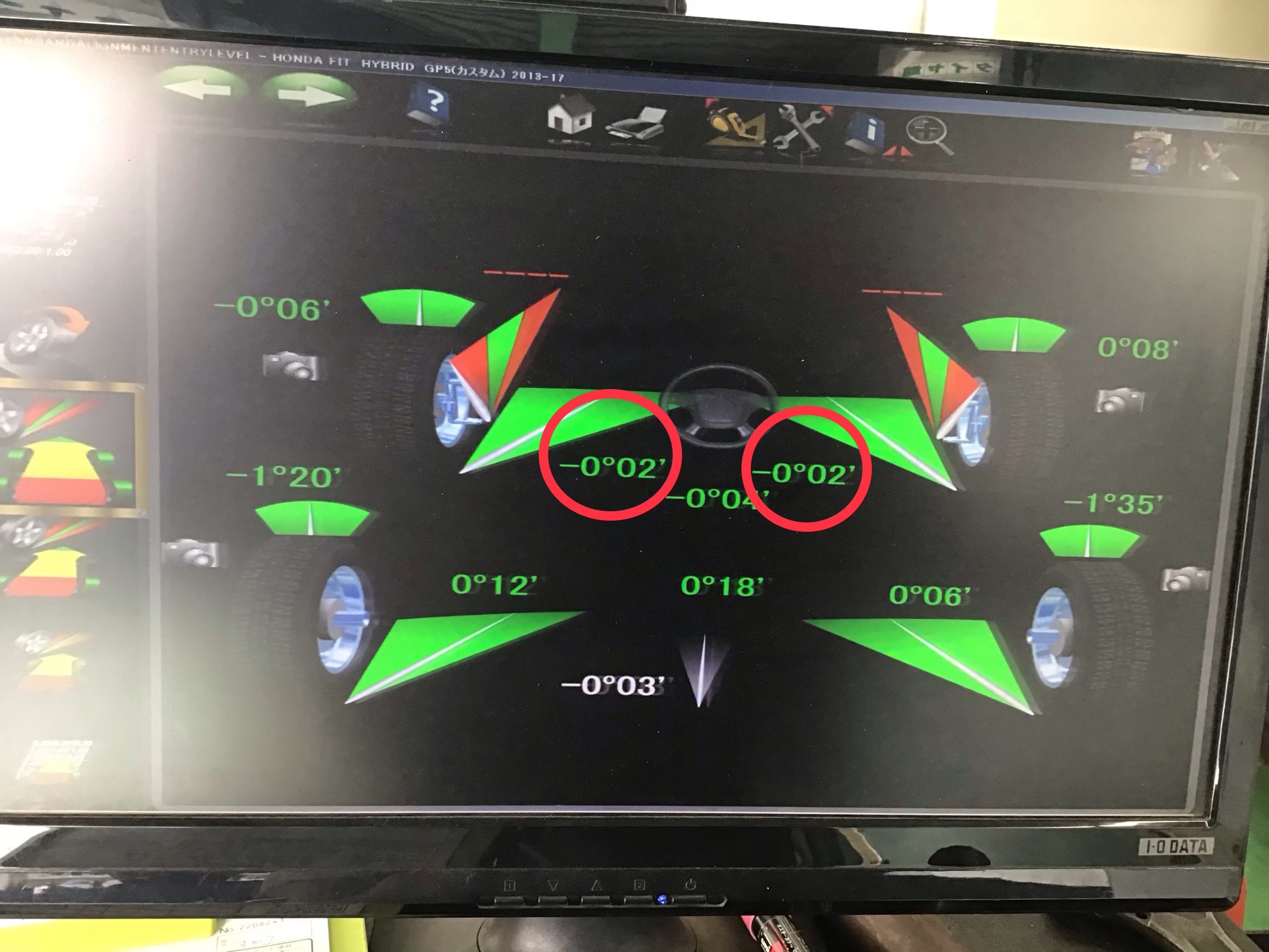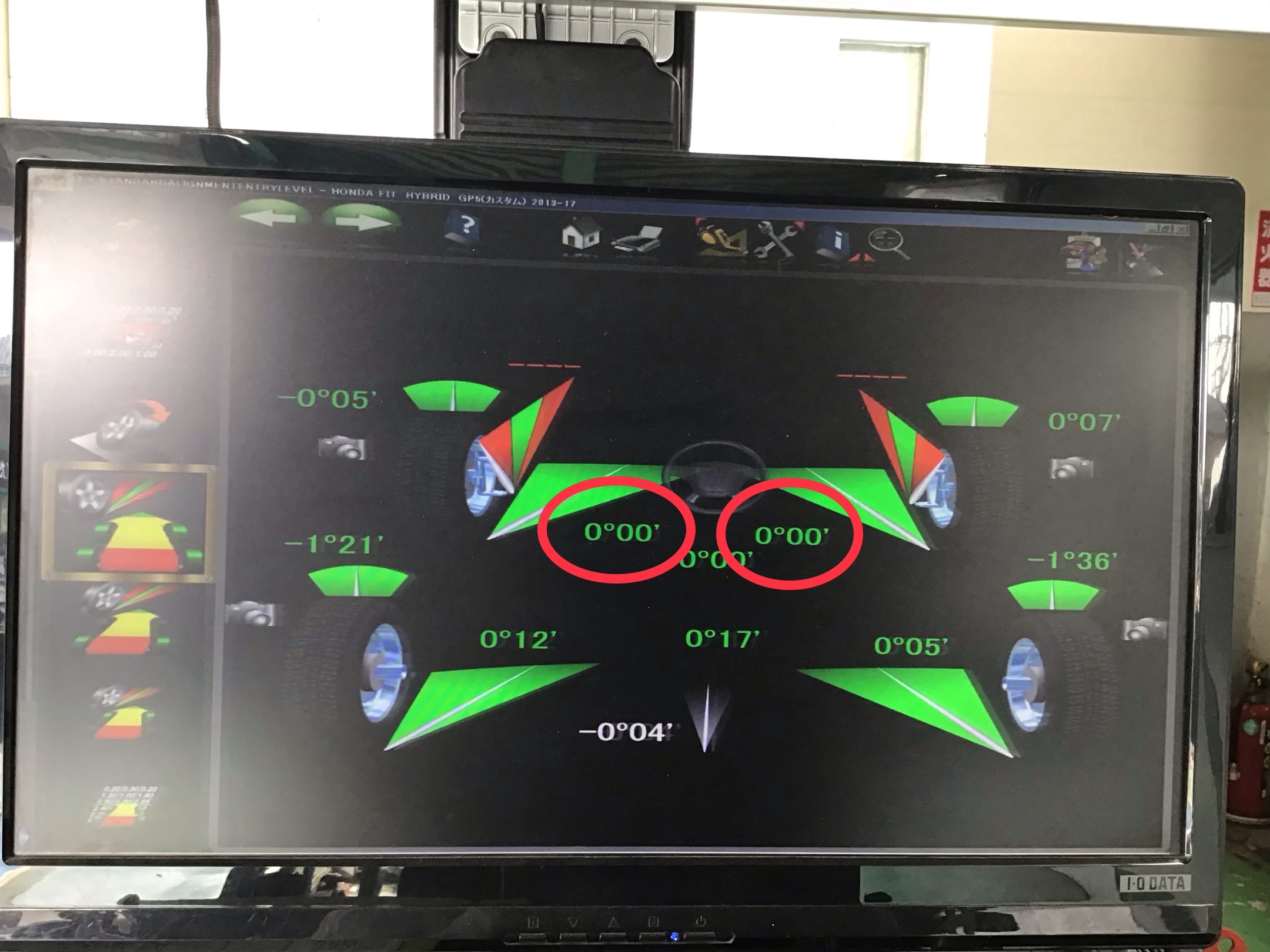 左右どちらも基準値内であまりズレてはいませんが、基準値のど真ん中に調整します!