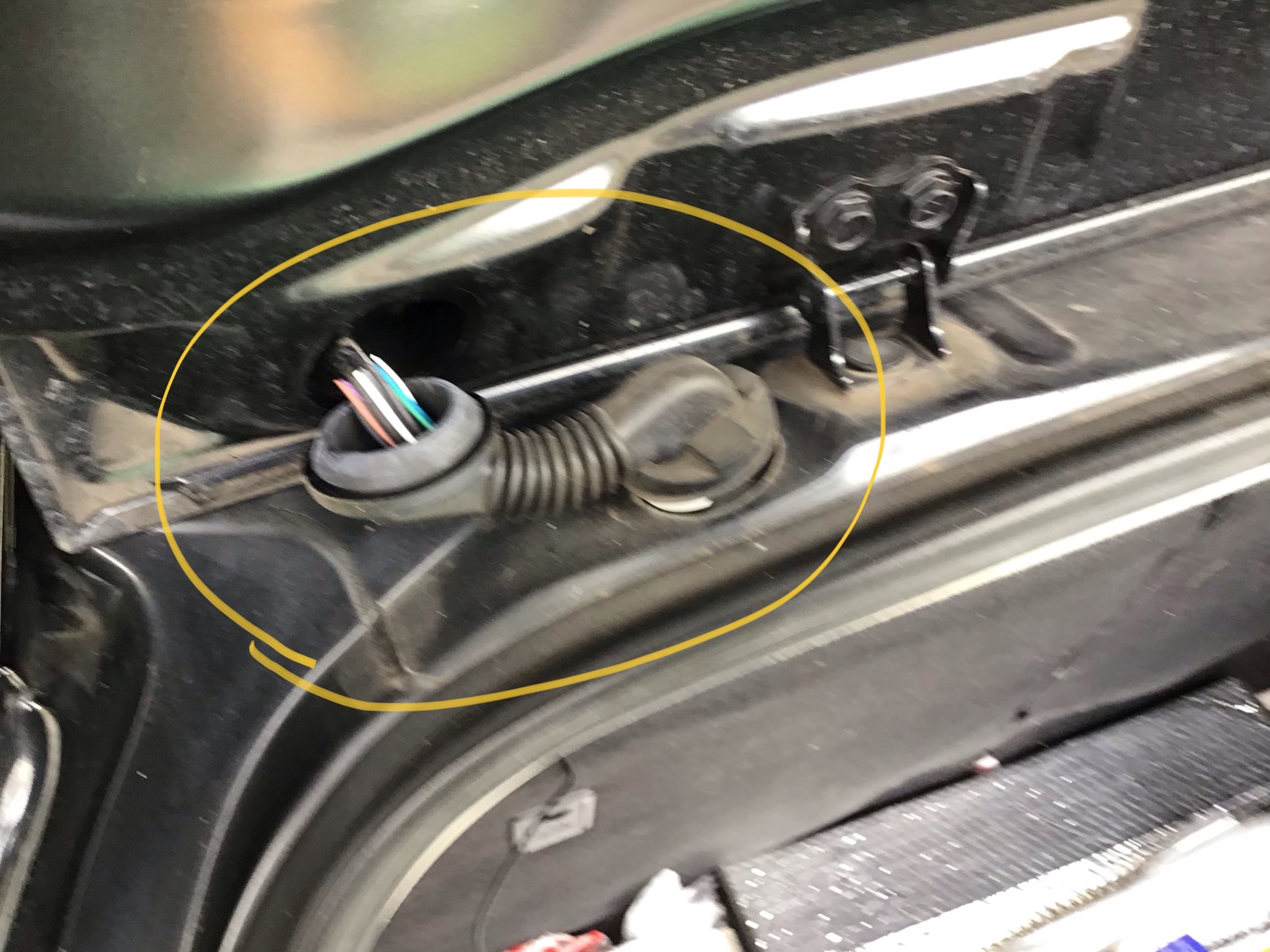 丸を付けた所から配線を通して車内からハッチバック側に配線します♪( ´θ`)