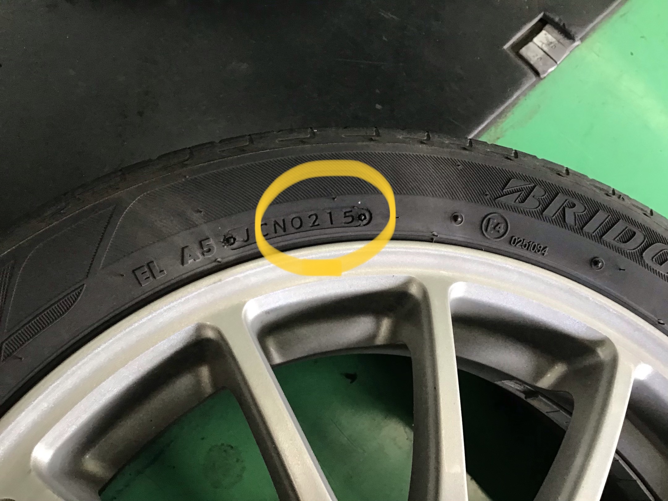 装着されていたタイヤを見ると、セリアルを確認してみると「0215」、2015年2週目に製造されたものだとわかりました。