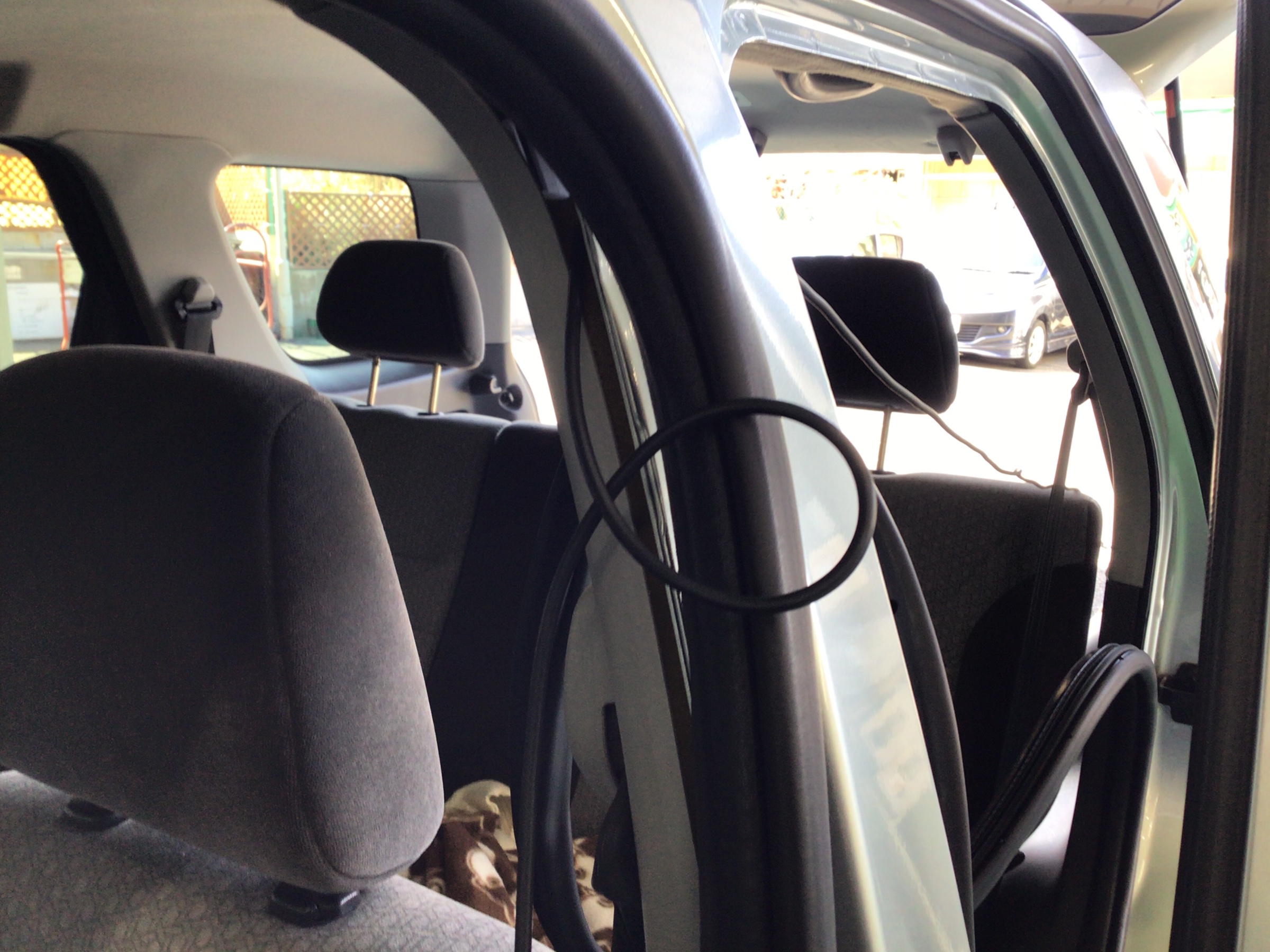 内装を外して配線を見えない様に隠しながら取り付けます。