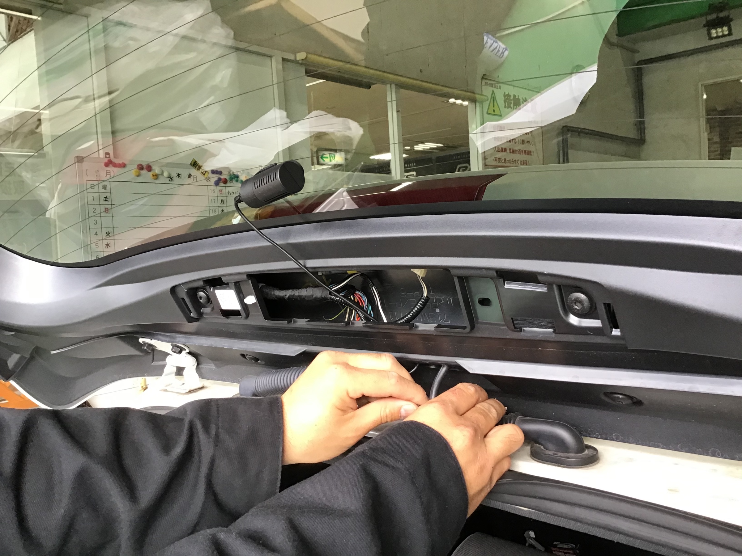 配線を車前方まで引っ張って…